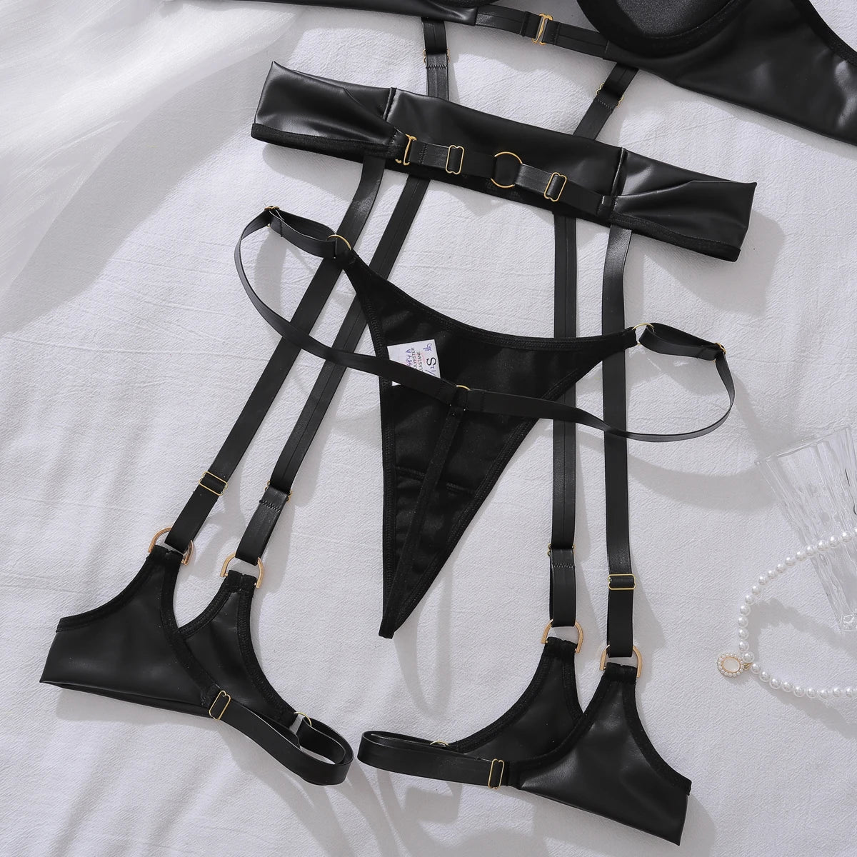 Ignite desire in this provocative Barely Look At You Lingerie Set. Crafted from sleek polyester with synthetic leather accents, this solid-colored ensemble leaves little to the imagination while accentuating your most seductive curves.