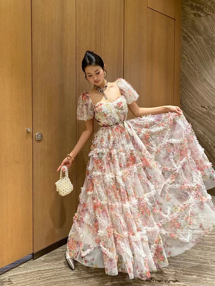 Don't miss out on the Been A Long Night Long Dress! This dress features a flattering ball gown silhouette, puff sleeves, and a beautiful floral pattern. The square collar and empire waistline add a touch of elegance, while the cotton and polyester material ensures comfort.