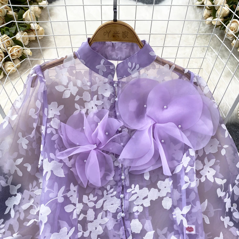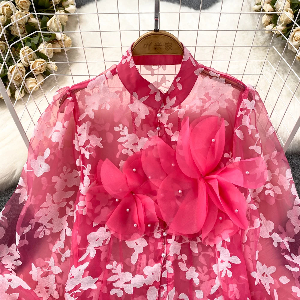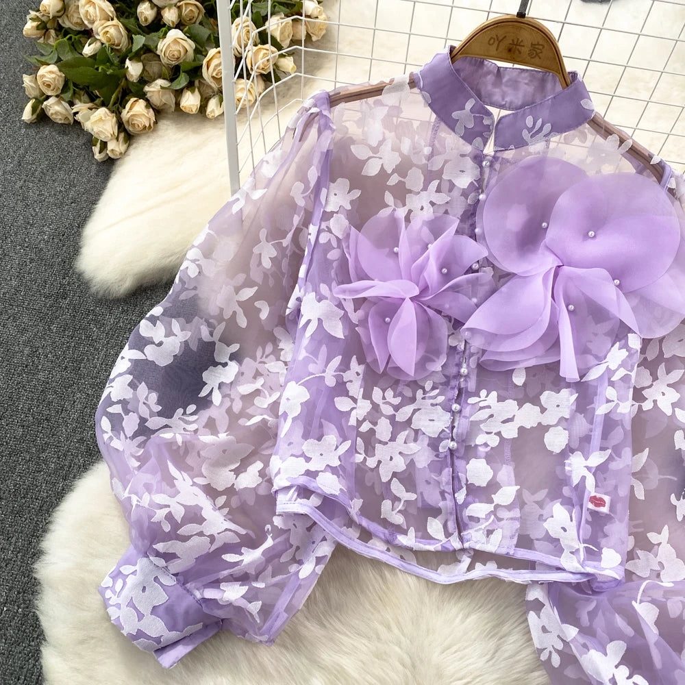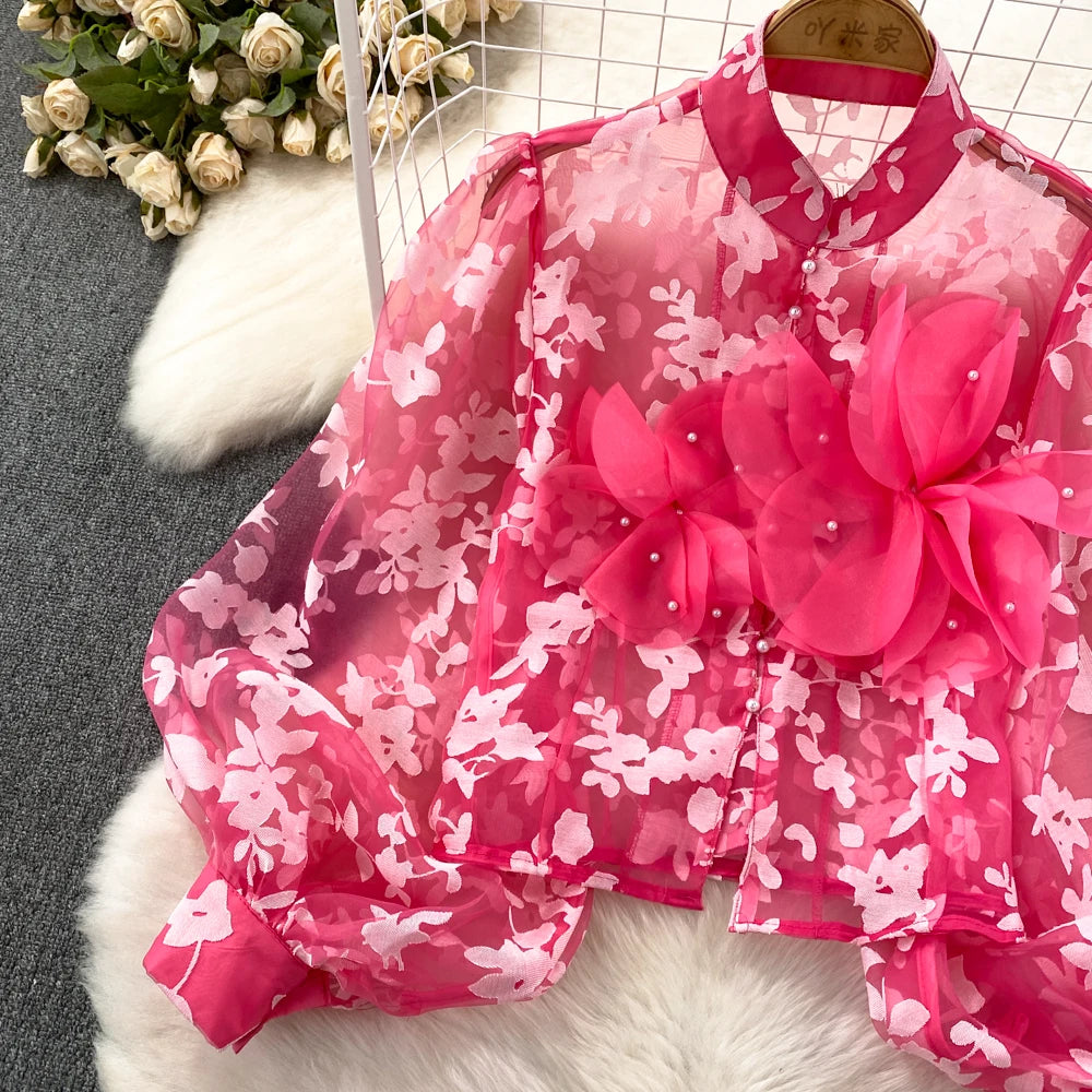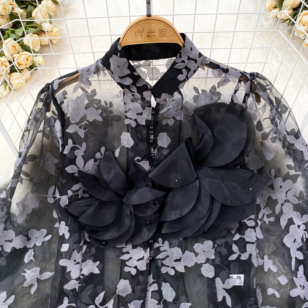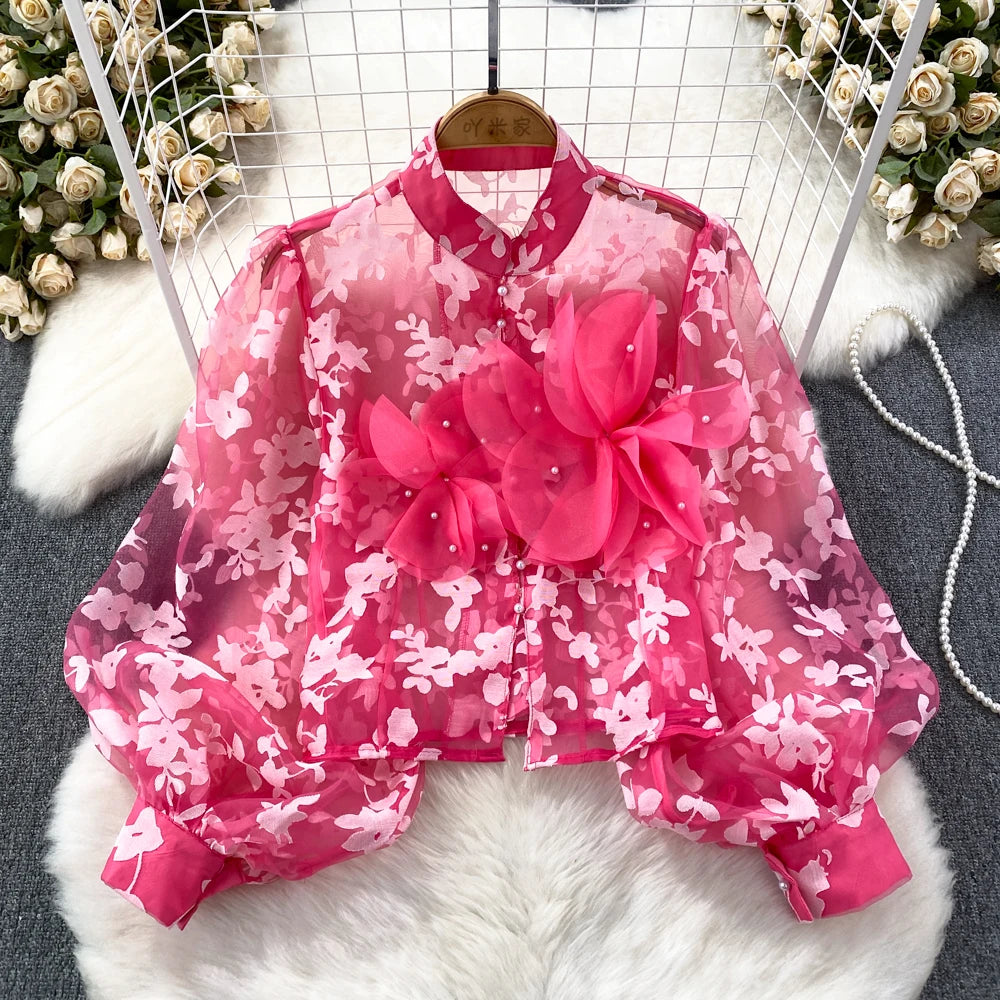 This blouse is a floral shirt made of polyester and acrylic materials. With its stylish button design, this top will not only elevate your fashion game, but also provide you with comfort and durability. Leave a lasting impression with this must-have blouse!