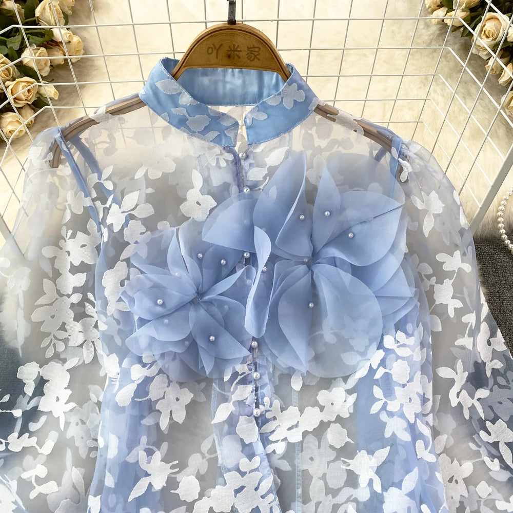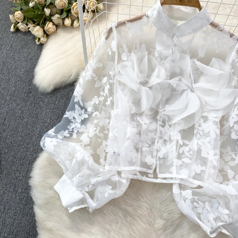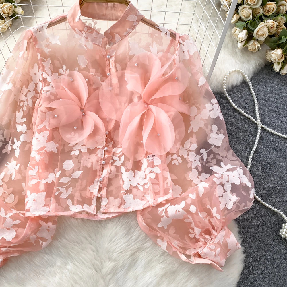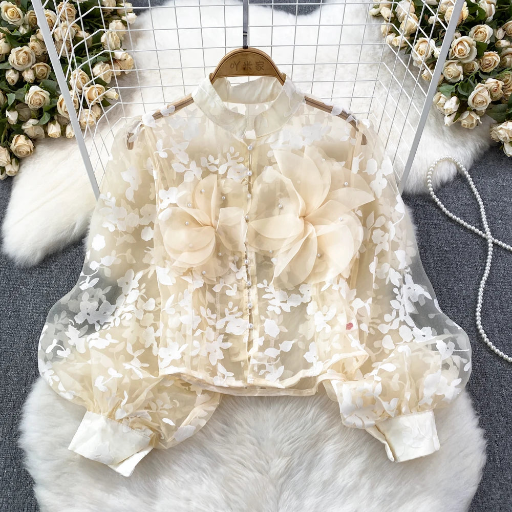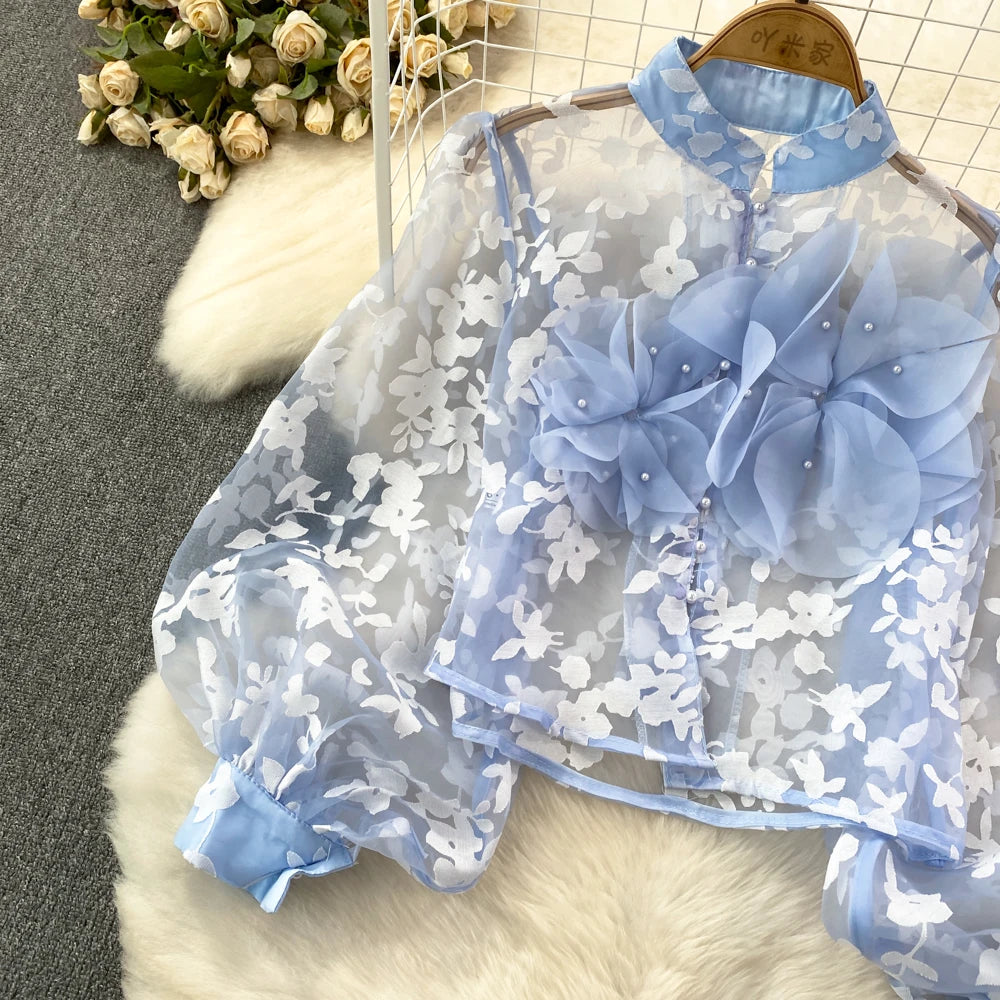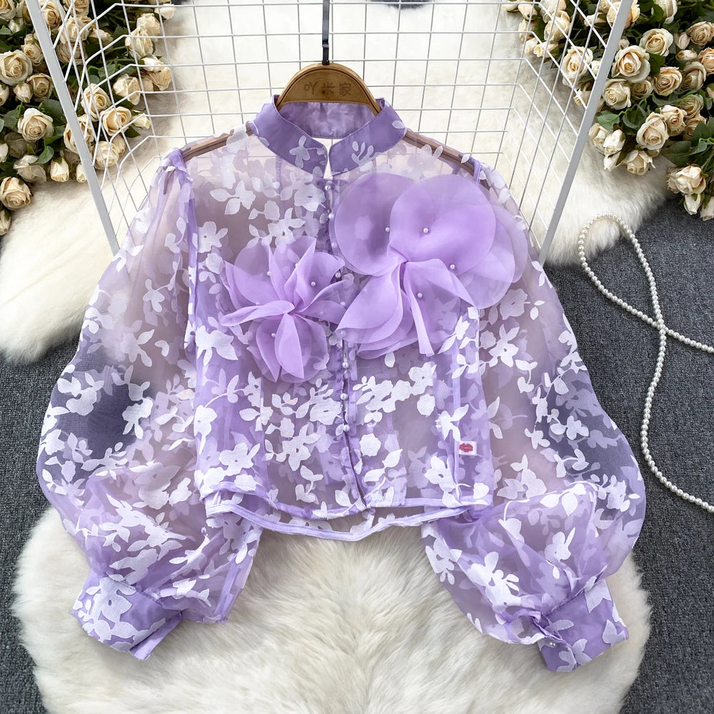 This blouse is a floral shirt made of polyester and acrylic materials. With its stylish button design, this top will not only elevate your fashion game, but also provide you with comfort and durability. Leave a lasting impression with this must-have blouse!