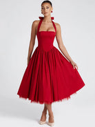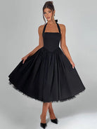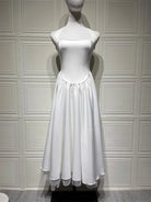 The Shape of Her Midi Dress Bold simplicity meets fearless silhouette. This A-line midi features a striking square collar that frames the neckline with architectural precision, while the clean solid design lets your presence do the talking. Crafted from a responsive polyester-spandex blend, it moves with intention and confidence. Understated drama for those who refuse to blend in.