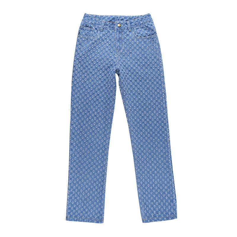 These cool and casual jeans are the perfect way to complete your casual style. The chic design has a trendy geometric pattern that is sure to turn heads. Made of cotton polyester for durability and comfort, the slim fit of the straight leg is sure to make you feel comfortable all day long. The button closure adds an easy fit for any of your favorite outfits.