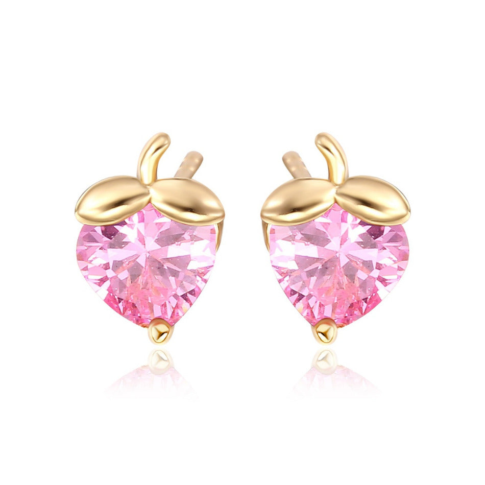 Cute Heart Cut Cubic Zircon Multi Color Strawberry Small Stud Earrings