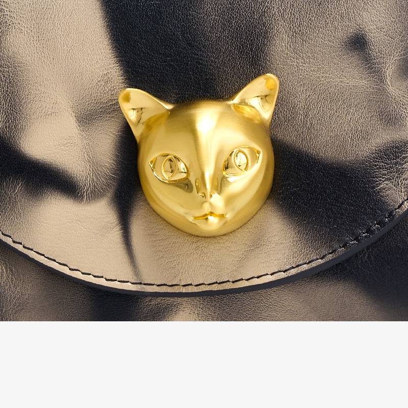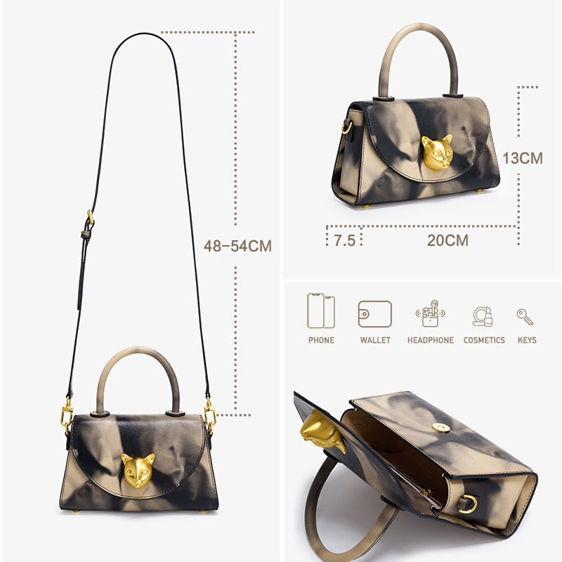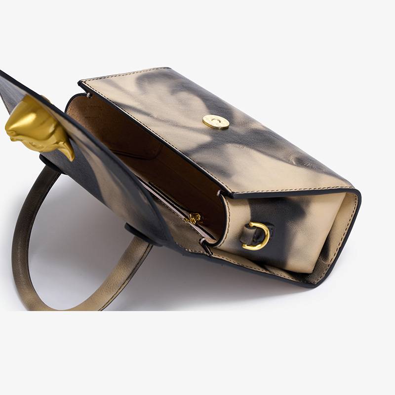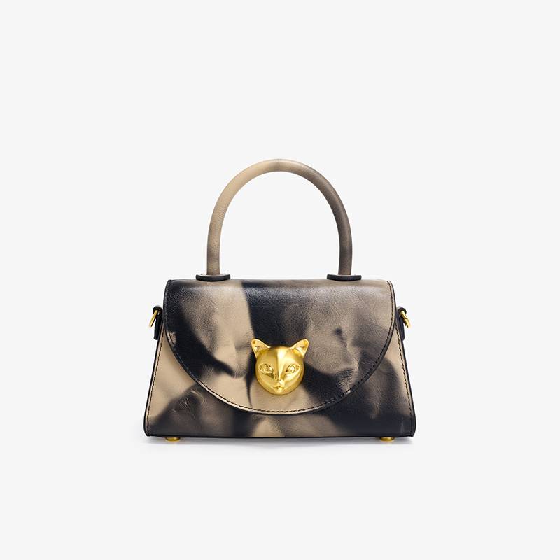 Smoke Patterned Top Handle Bag with Lyon Head Metal Decoration