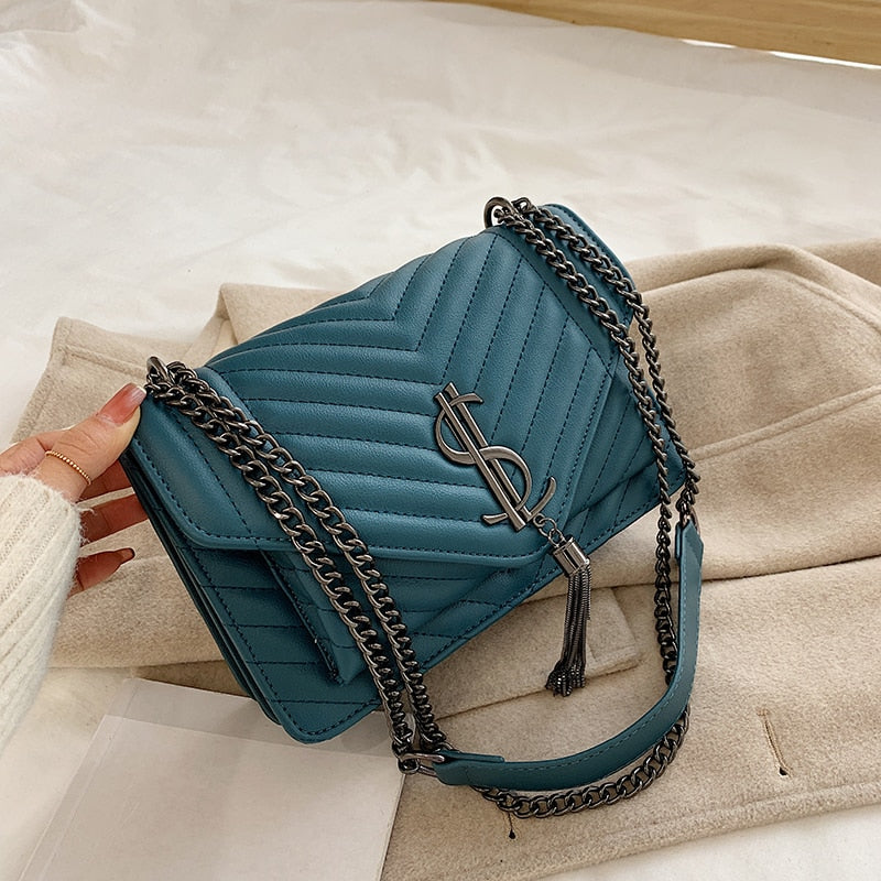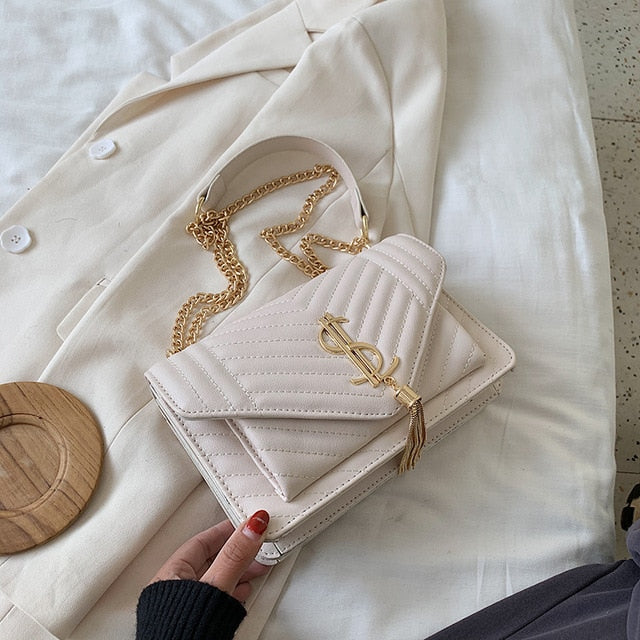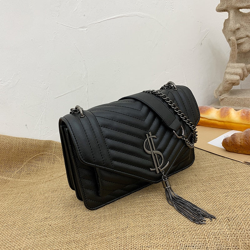Stripe Patterned Shoulder Bag with Tassel Decoration and Synthetic Leather