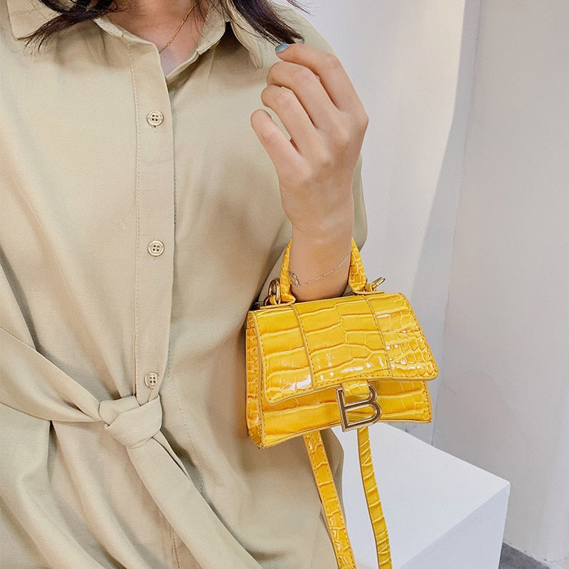 B Letter Decorated Top Handle Bag with Pocket and PU Material