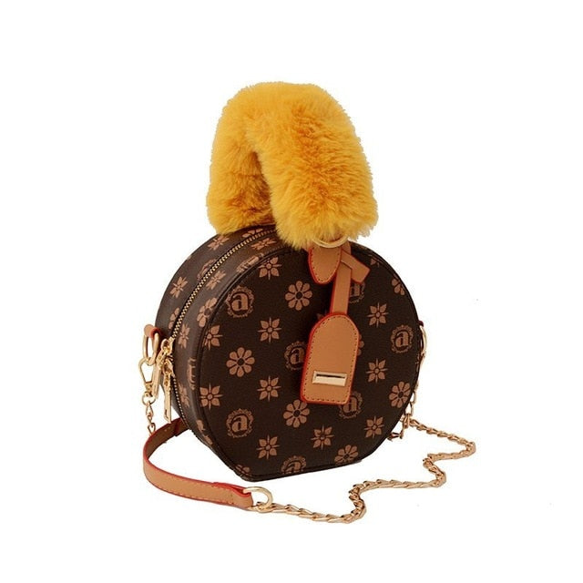 Flower Patterned Sling Bag with Leather and Plastic Material. Can be worn as a Top Handle Bag.