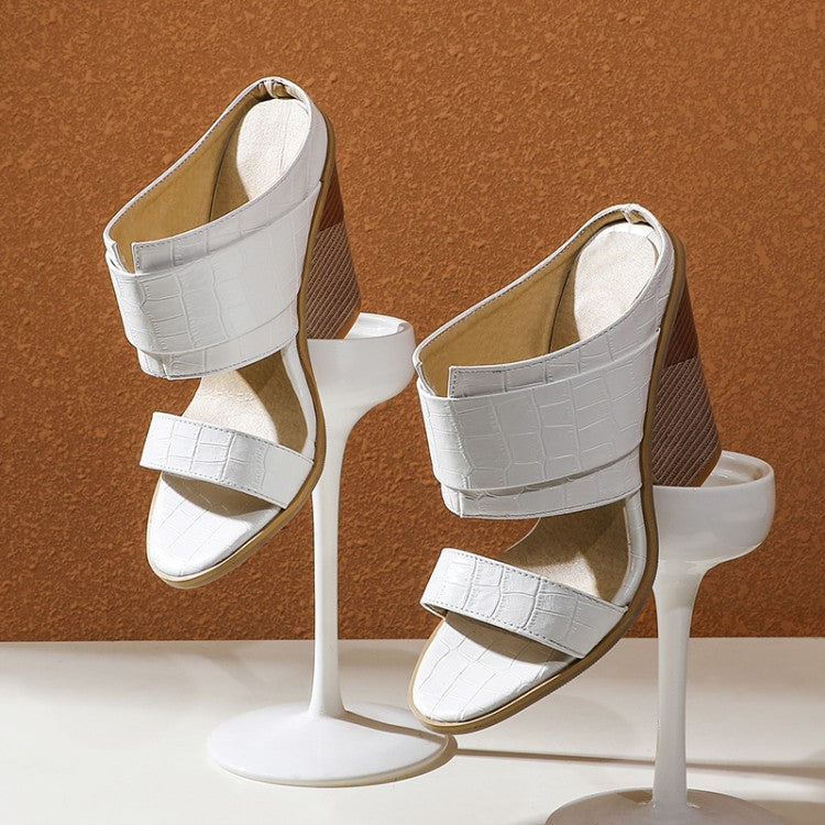 Bonded PU Leather Open Toe Super High Wedge Heeled Sandal