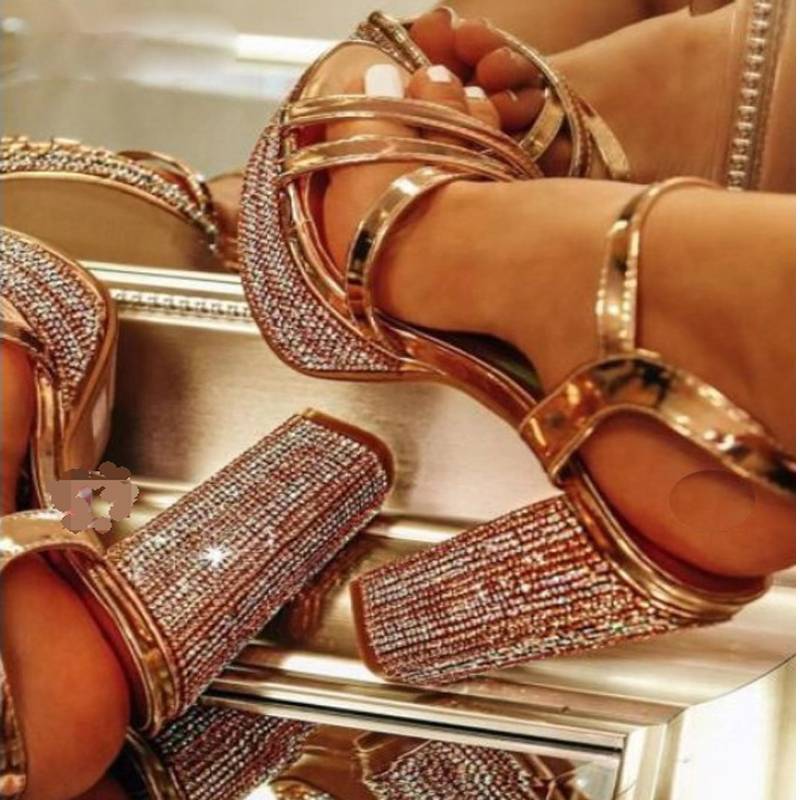 Platformed Glitterred PU Leather Heels with Ankle Strap