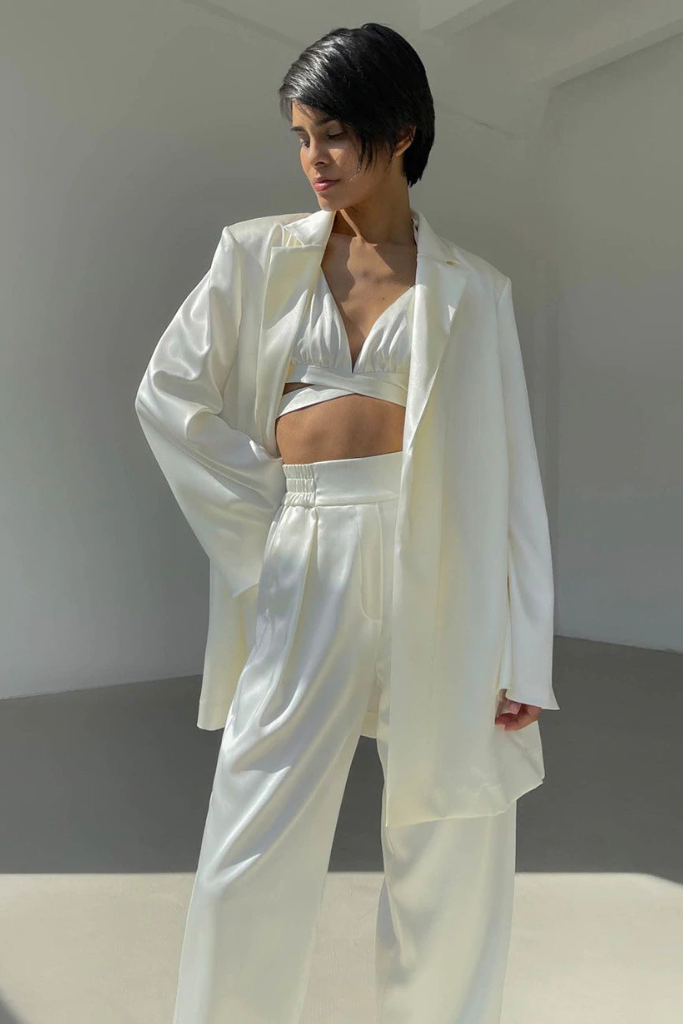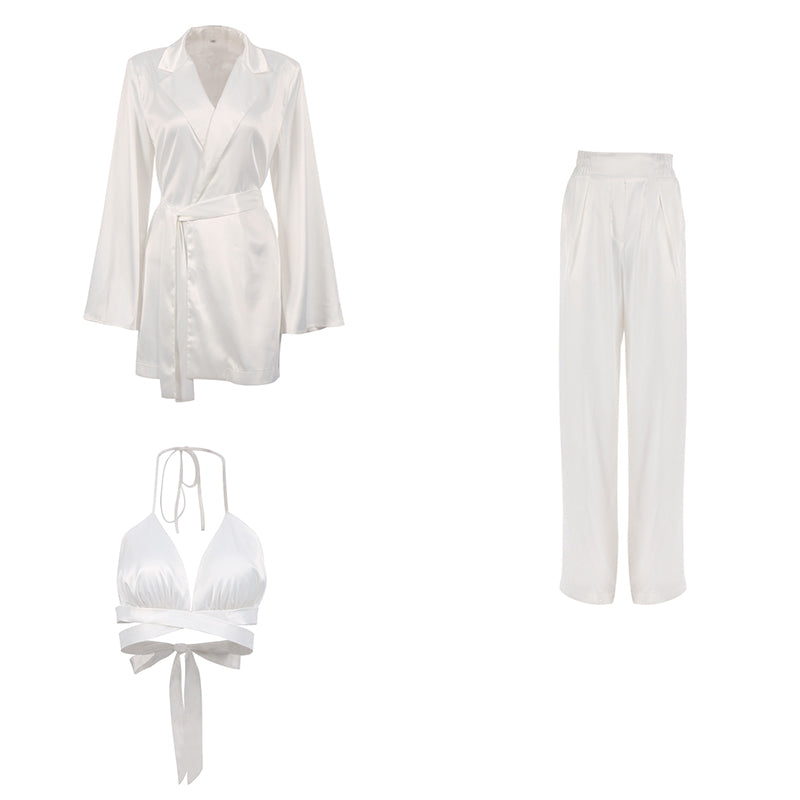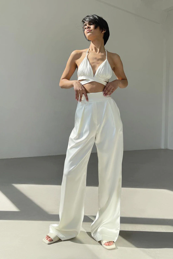 Set your look to stun with this full outfit set! From a halter crop top to lounge pants, this set has it all. Whether you're out with friends or just want to look good while lounging at home, this outfit is sure to make you feel good.