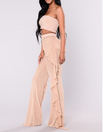 Mesh Polyester Spandex Solid Patterned Loose Ruffled See Through Pants