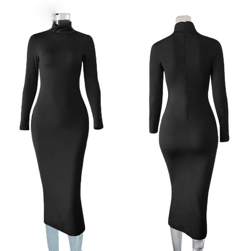 Polyester Spandex Turtleneck Long Sleeve Dress