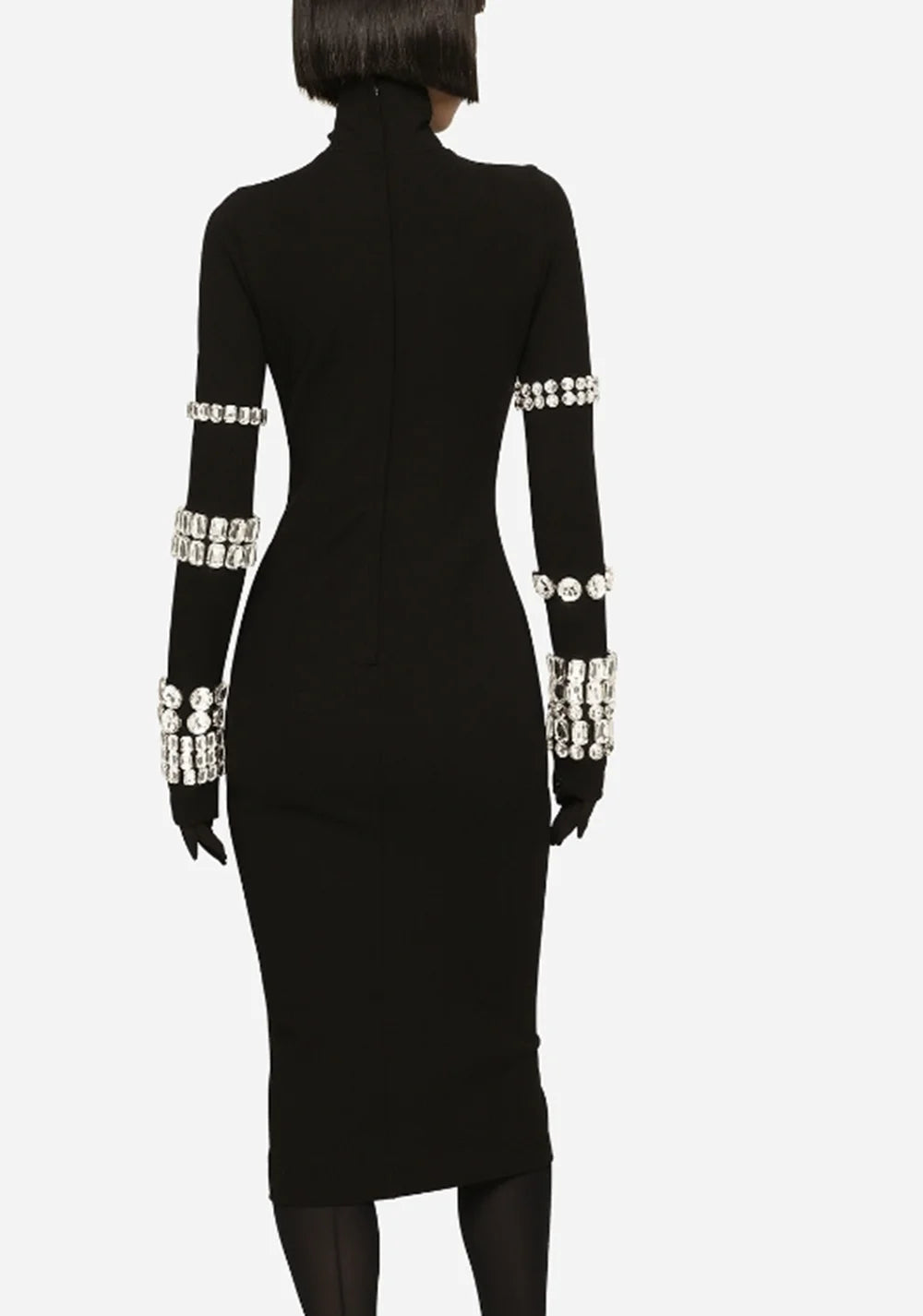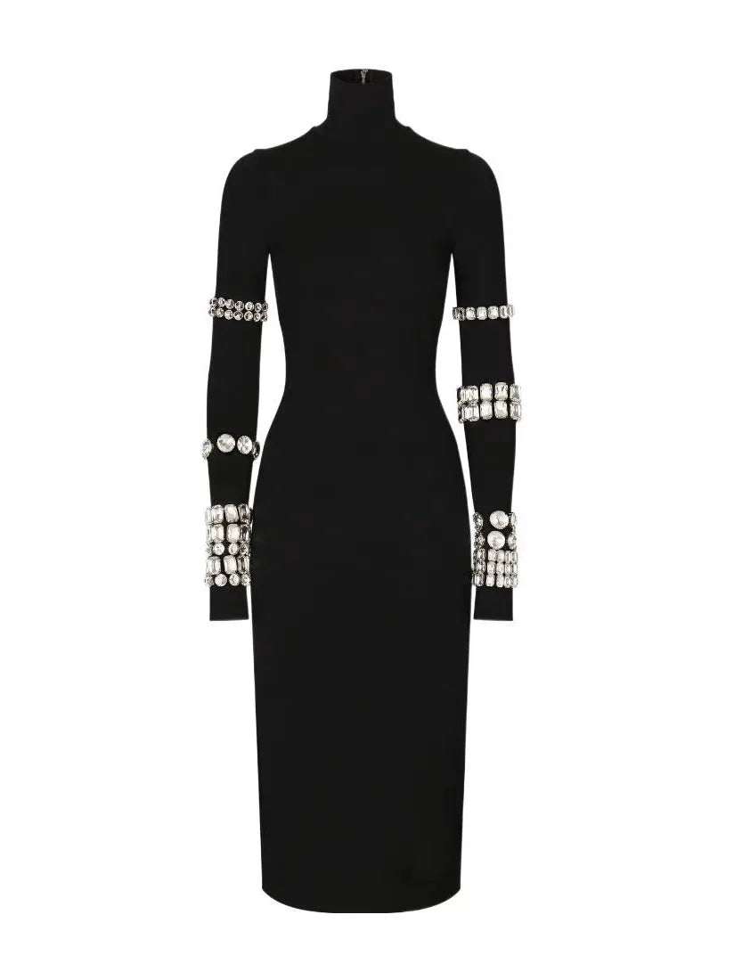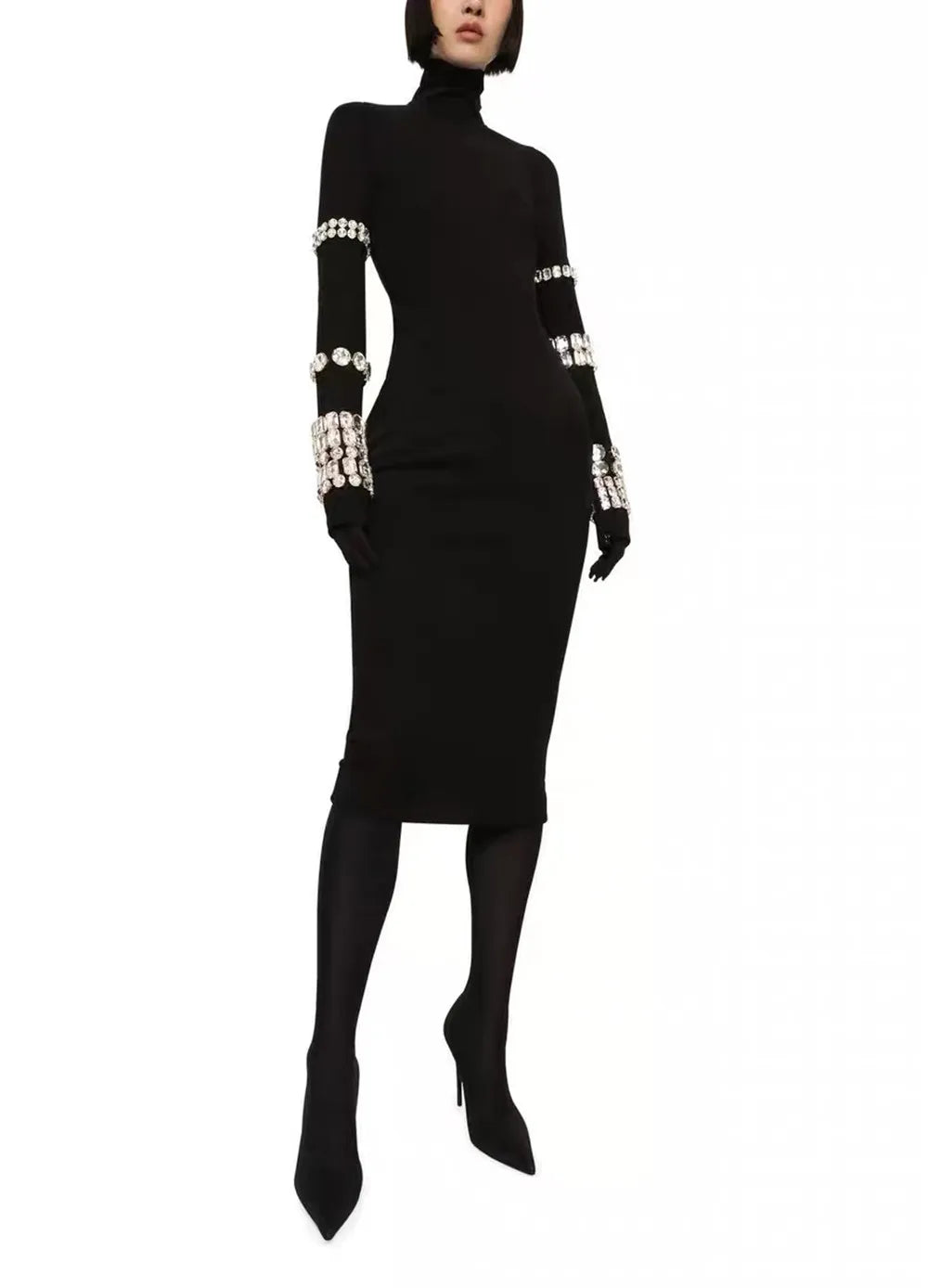 Discover the classic elegance of this midi dress. This stunning dress features a midi length, providing just the right amount of coverage and sophistication. Made of a nylon, rayon, and spandex blend, it is both comfortable and form-flattering.