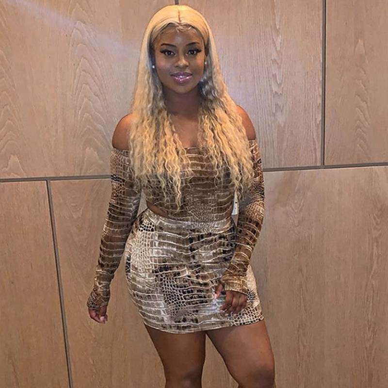 Spandex Polyester Elastic Waist Animal Pattern Skirt Sets