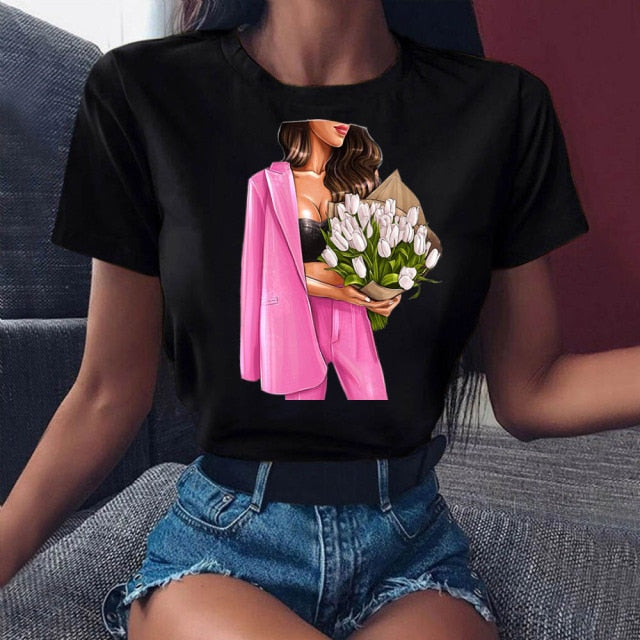 Short-Sleeved Cotton Modal Polyester T-Shirt with Various Fashion Design Prints