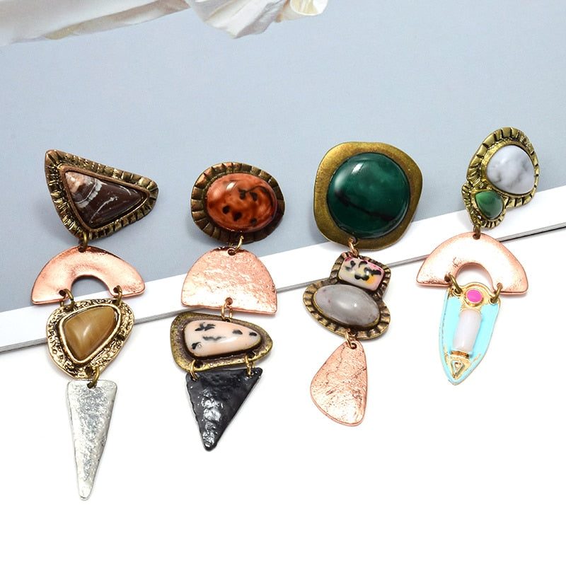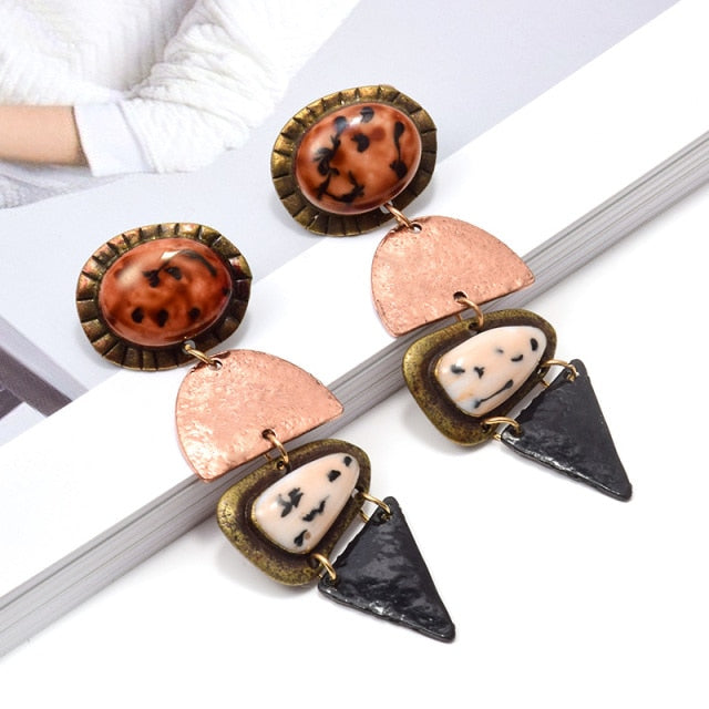 Irregular Geometric Shaped Drop Dangle Earrings Made From Alloy Metal