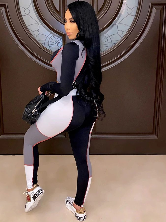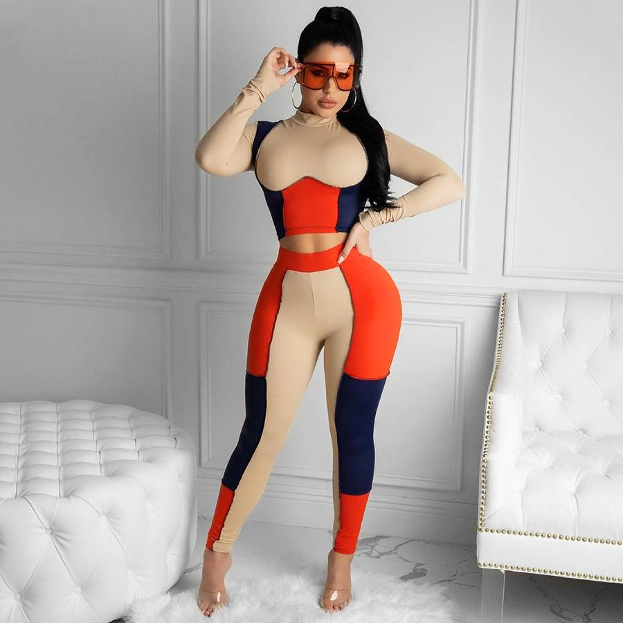 Polyester Spandex Long-Sleeved Crop Top and Elastic Waisted Long Pants Set.