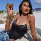Polyester Spandex Sleeveless Solid Color Crop Tops