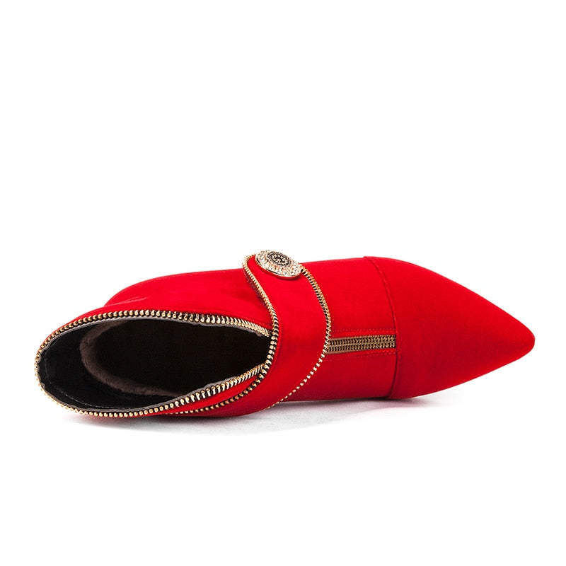 These elegant pointed-toe boots with thin heels are ideal for a night out on the town. Pair with a matching dress or a pair of skinny jeans for a sophisticated look. Lightweight and durable materials with a casual yet elegant design. This stylish boot is the perfect complement to any casual outfit.