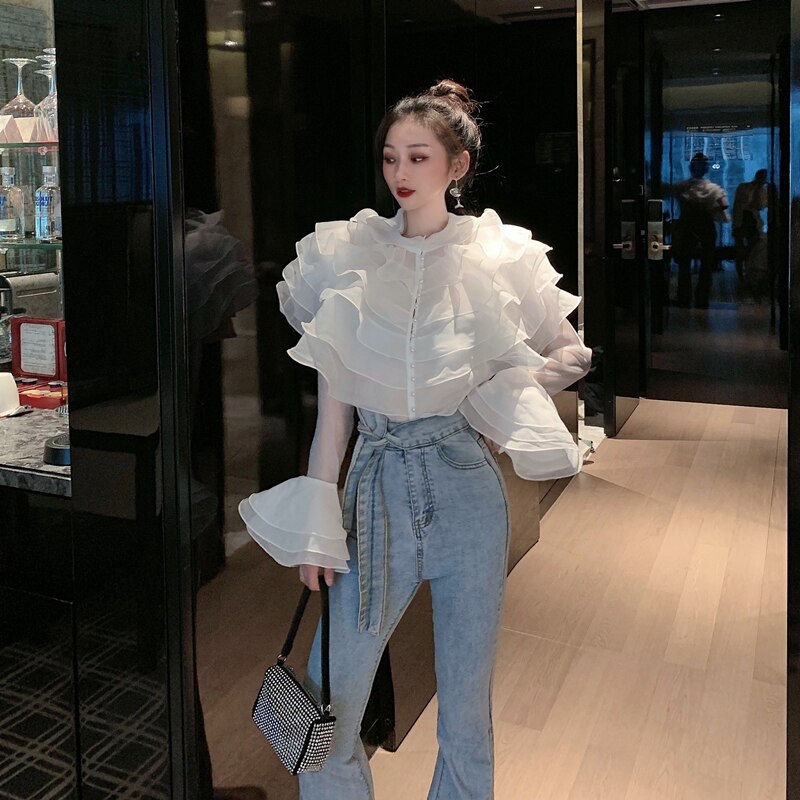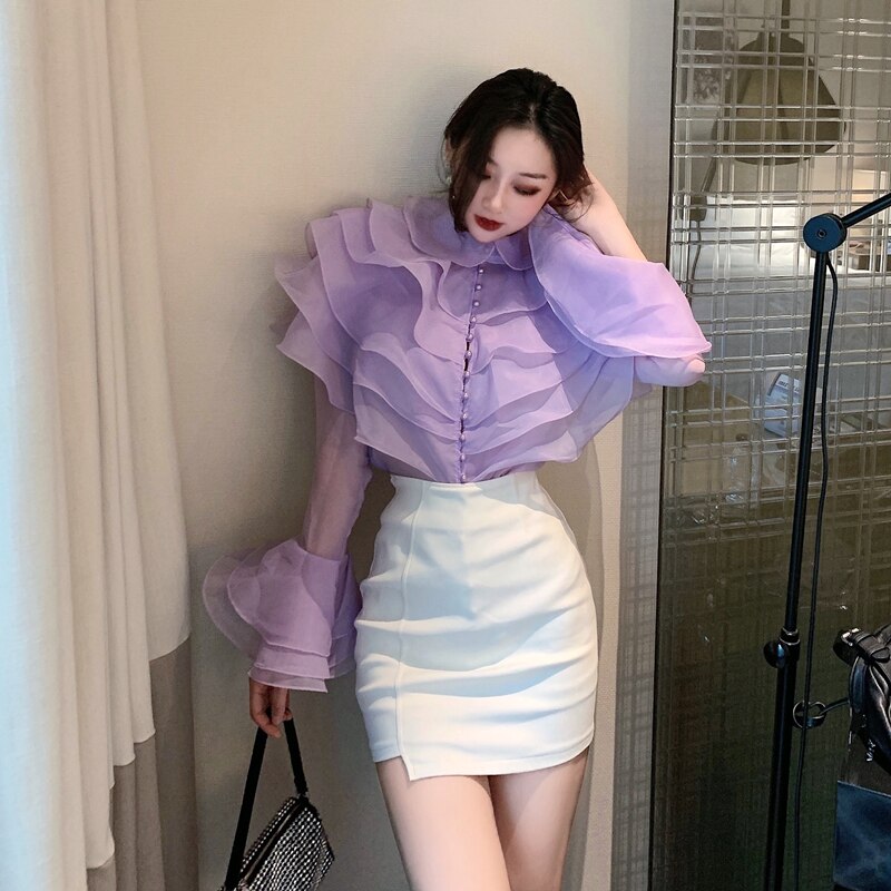 Looking chic and stunning, this women's blouse is a great pick for elegant occasions where you want to feel like a sophisticated woman. Stylish and trendy, the polyester fabric has a soft and silky feel that will make this blouse feel like you're wearing nothing at all. Flattering ruffles down the front add a feminine touch and make this blouse perfect for any formal occasion.