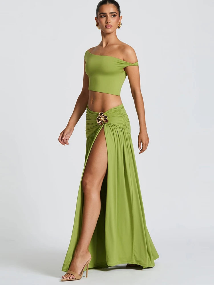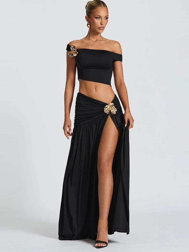 Make a bold statement with the Crown On Repeat Skirt Set. This floor-length skirt, crafted from a sleek blend of spandex and polyester, offers a daring silhouette that moves with confidence. Perfect for those who want to stand out, its stretch fabric ensures comfort while commanding attention wherever you go.