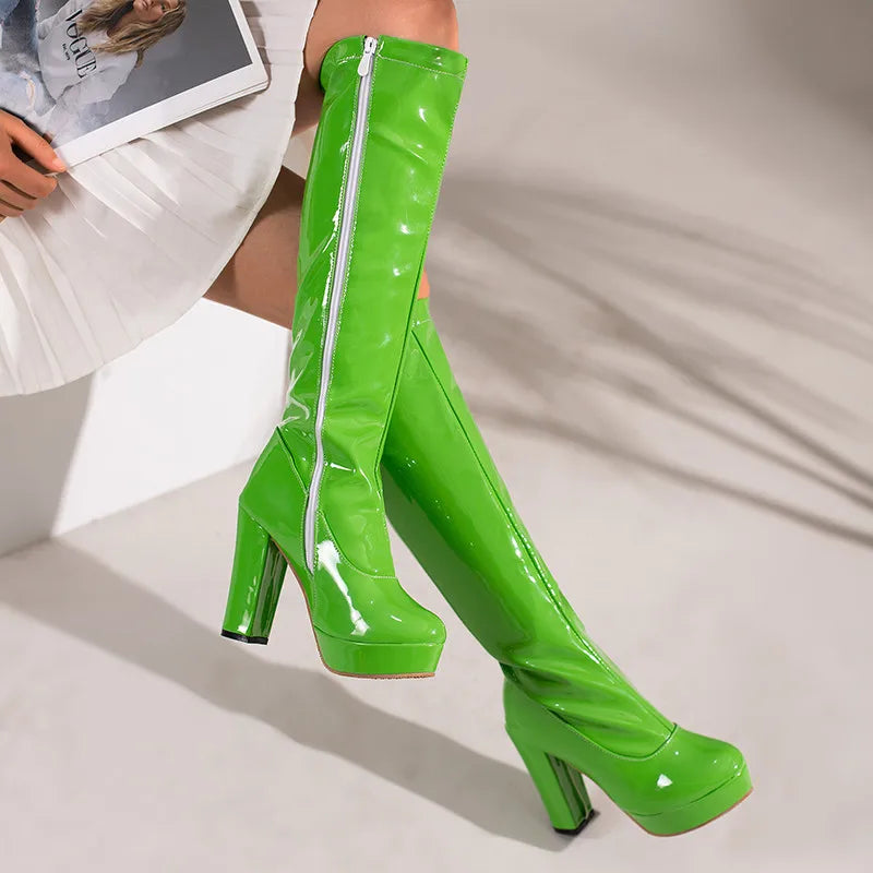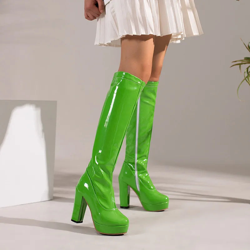 Step into the spotlight with our Dance In The Sun Knee-High Boots! Crafted with a durable rubber outsole, patent leather upper, and plush insole, these boots are perfect for dancing all day long. The square heel provides comfort and stability, while the short plush lining adds a touch of warmth. Shine on and feel the energy with every step!