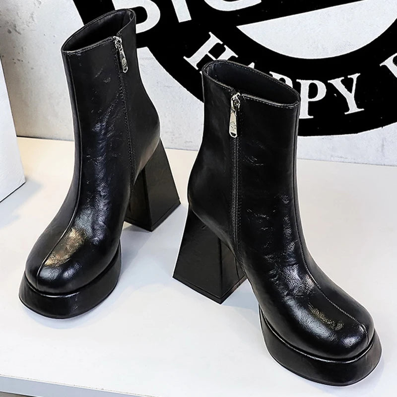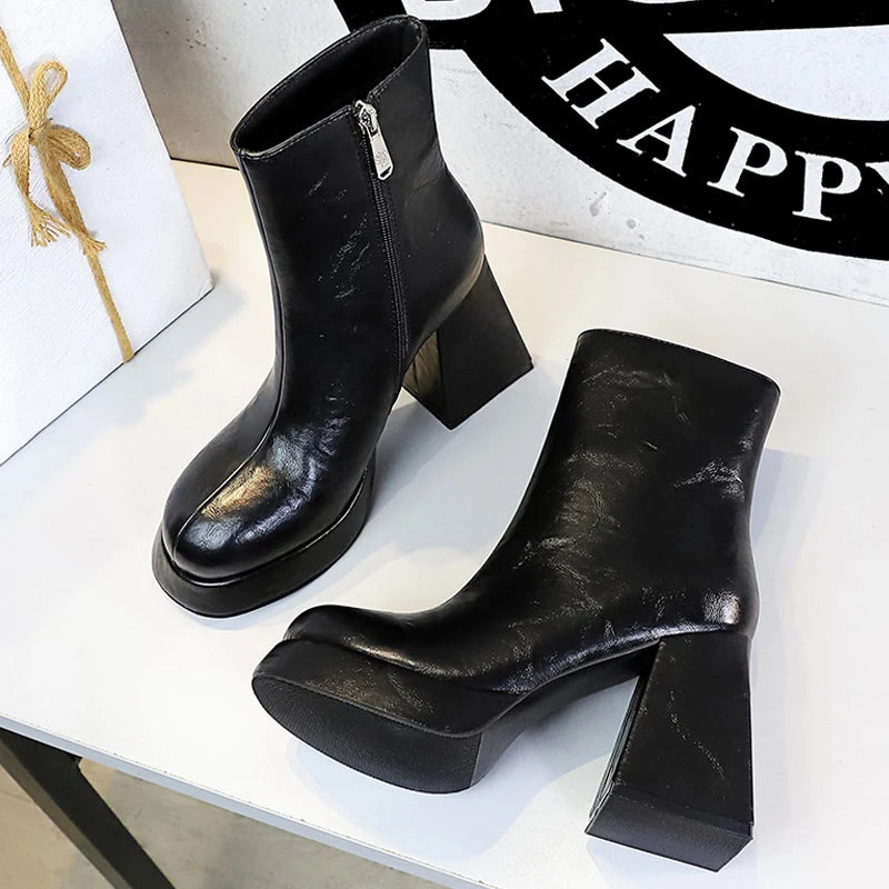 Step boldly with the Dark Embrace Boots—sleek ankle-height footwear designed to fuse effortless style with fierce attitude. Featuring a smooth ZIP closure, these boots slip on easily, hugging your feet for a confident, secure fit. Their minimalist design makes them the perfect foundation for any daring look, ready to take you from day to night with unstoppable edge.