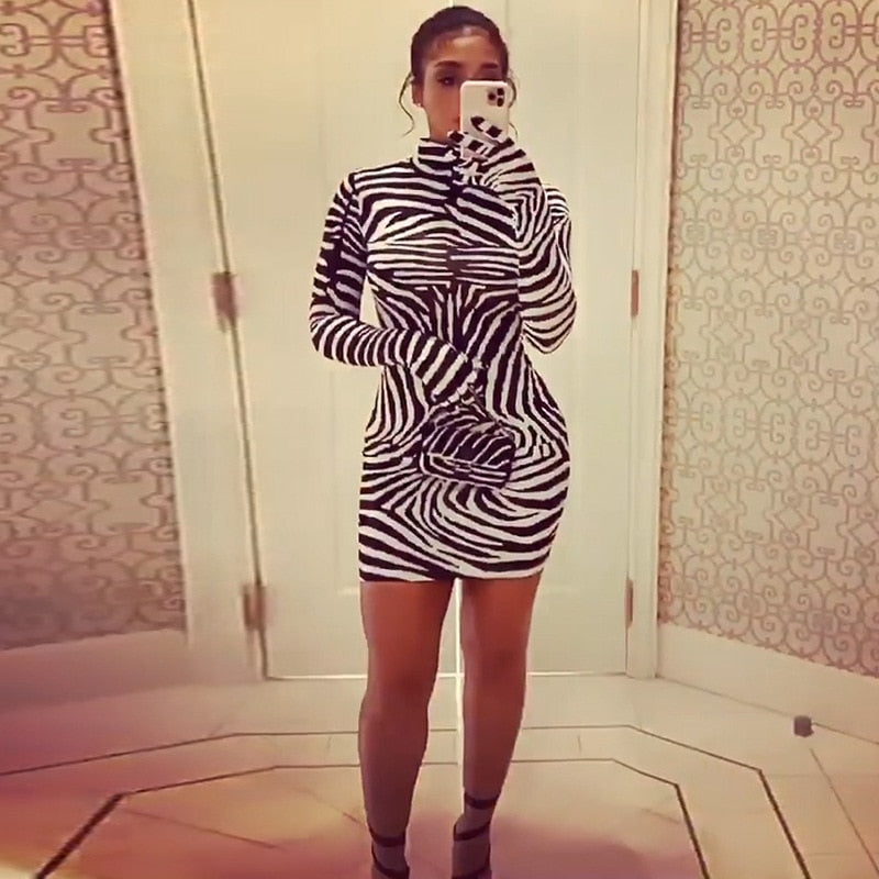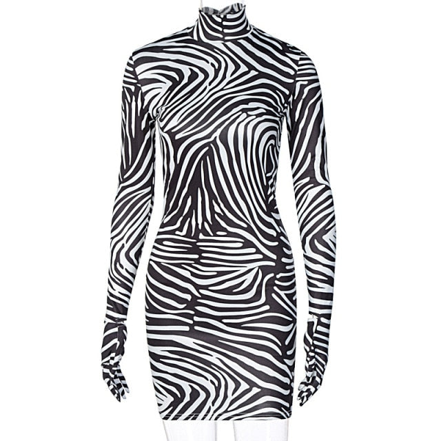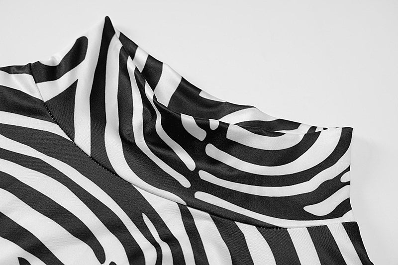 A fun and fashionable look for girls, this dress is a great choice for those who love a full sleeve design. Featuring a zebra pattern, it's a fun twist that is sure to dazzle. A turtleneck collar adds a touch of sophistication for a look that's perfect for any occasion. This lightweight material is breathable and comfy for a summery look.