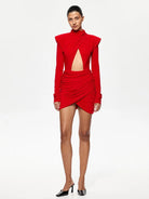 Fatal Softness Mini Dress proves that vulnerability can be your greatest weapon. Crafted from a polyester-elastane blend, this solid mini delivers a sleek, second-skin fit that hugs your curves with precision. Understated yet magnetic, this dress whispers danger in the most elegant way possible.
