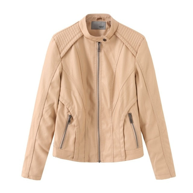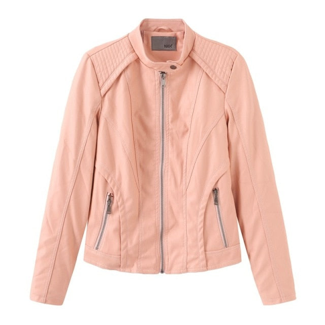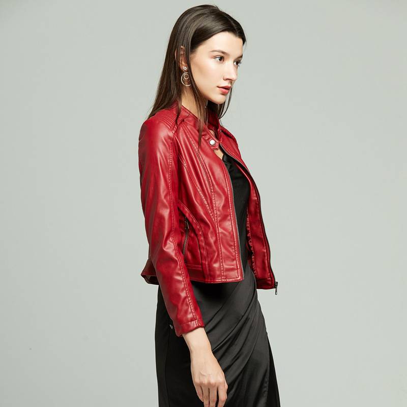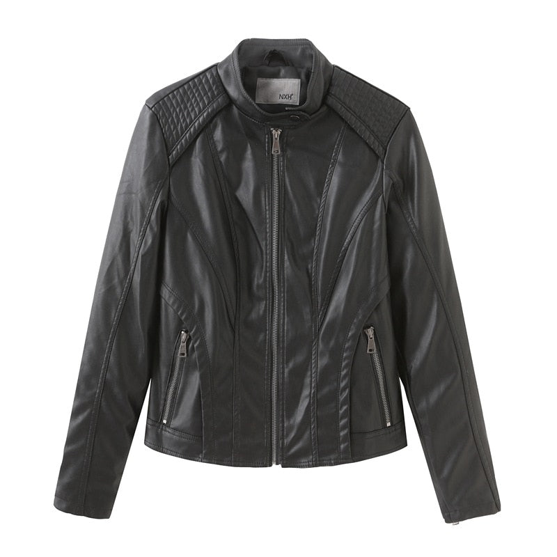 A fashionable jacket that has a functional zipper closure and stands collar. This jacket is ideal for the cold winter season. The stylish color scheme will go with many different outfits so it can be worn all year round. The jacket is made with durable PU leather materials for maximum comfort.