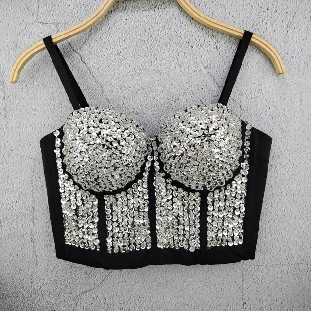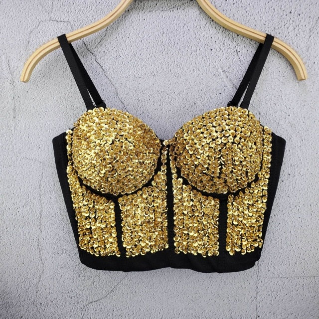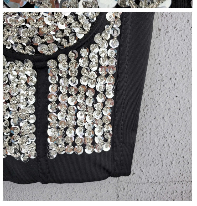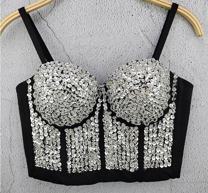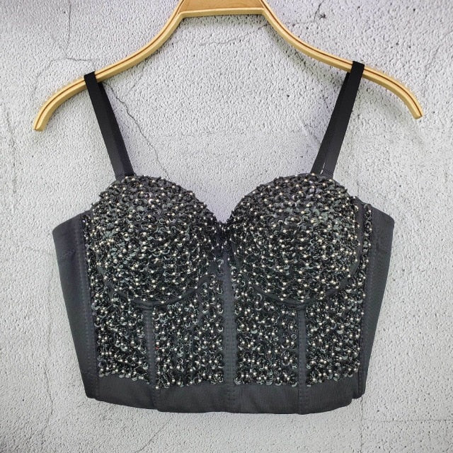 Cotton Polyester Crop Top with Sequin Decoration, Hook and Eye Closure