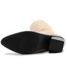 Elevate your footwear collection with these khaki flock knee-high boots, designed for both comfort and style. The soft flock texture adds a luxurious feel, while the convenient side zipper ensures easy on-and-off wear. Perfect for casual outings or dressier occasions, these versatile boots pair effortlessly with jeans, skirts, or dresses. The knee-high silhouette provides excellent support and coverage, making them an essential addition to any wardrobe.