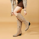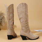 Khaki Flock Zipper Knee High Boots