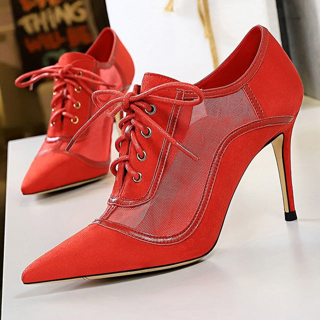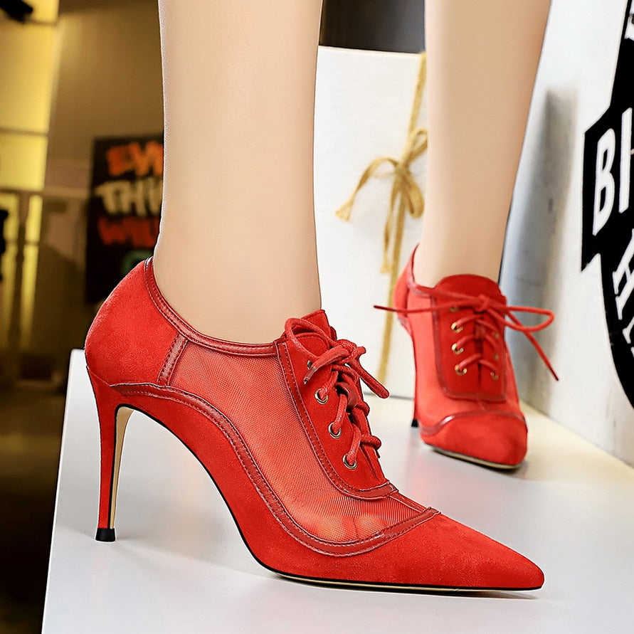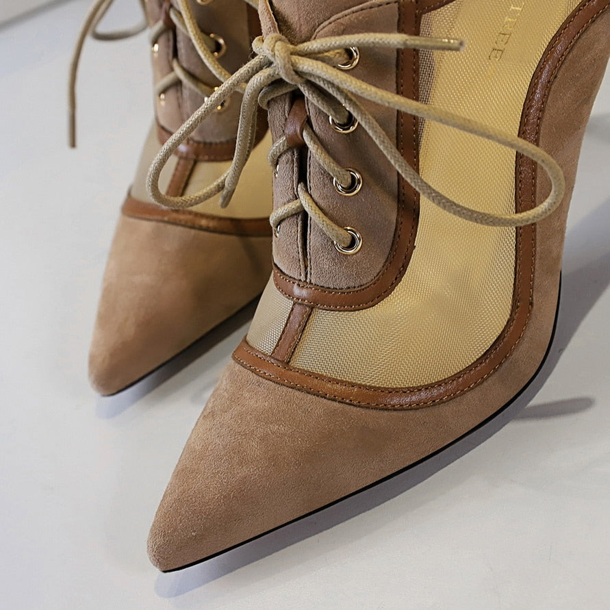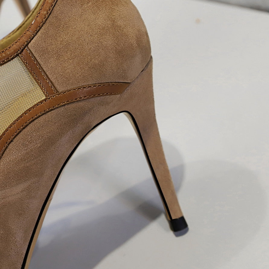 Air Mesh on Swing Thin Heel Ankle Boots