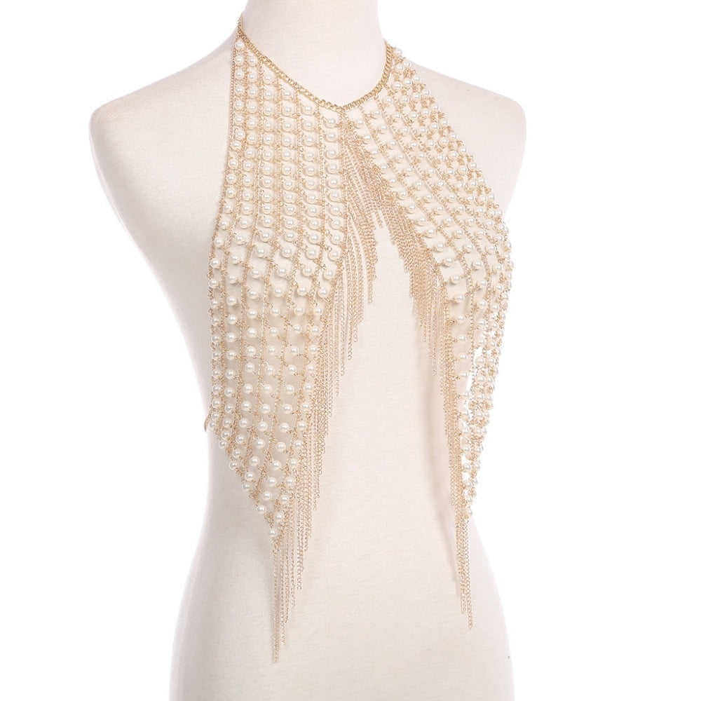 Geometric Pattern Tassel Decorated Pearls Chain Tank Top