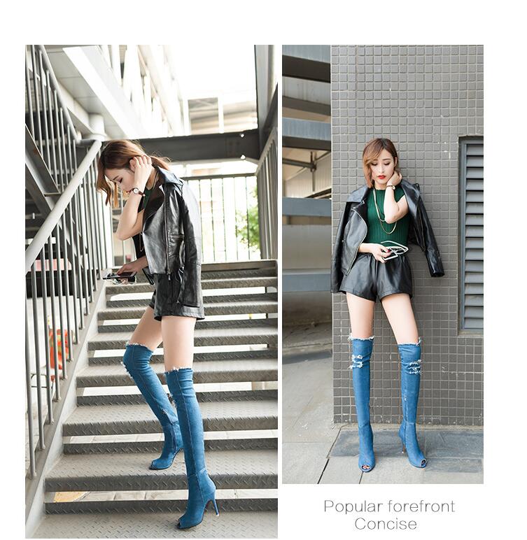 Modern Tassel Jeans Denim Women Over The Knee Boots
