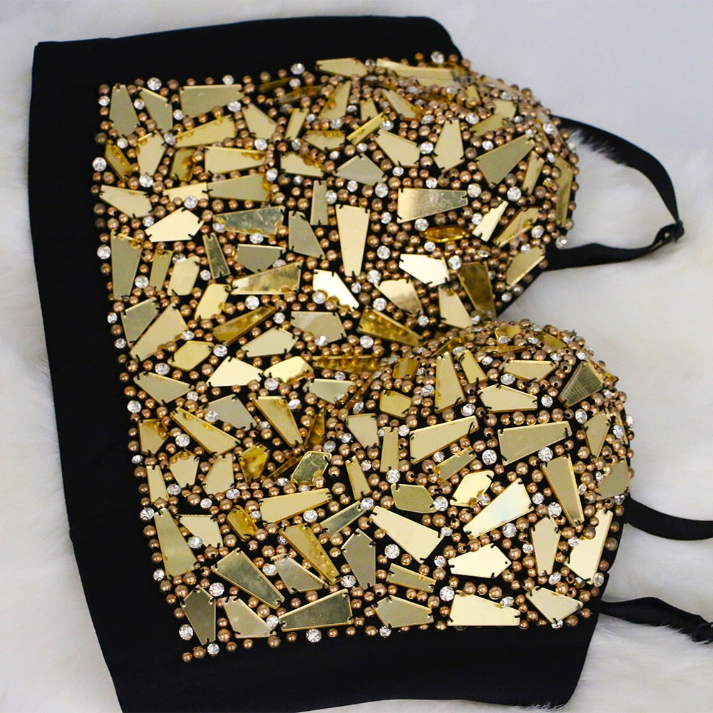 Spandex Polyester on Geometric Beading Crop Top