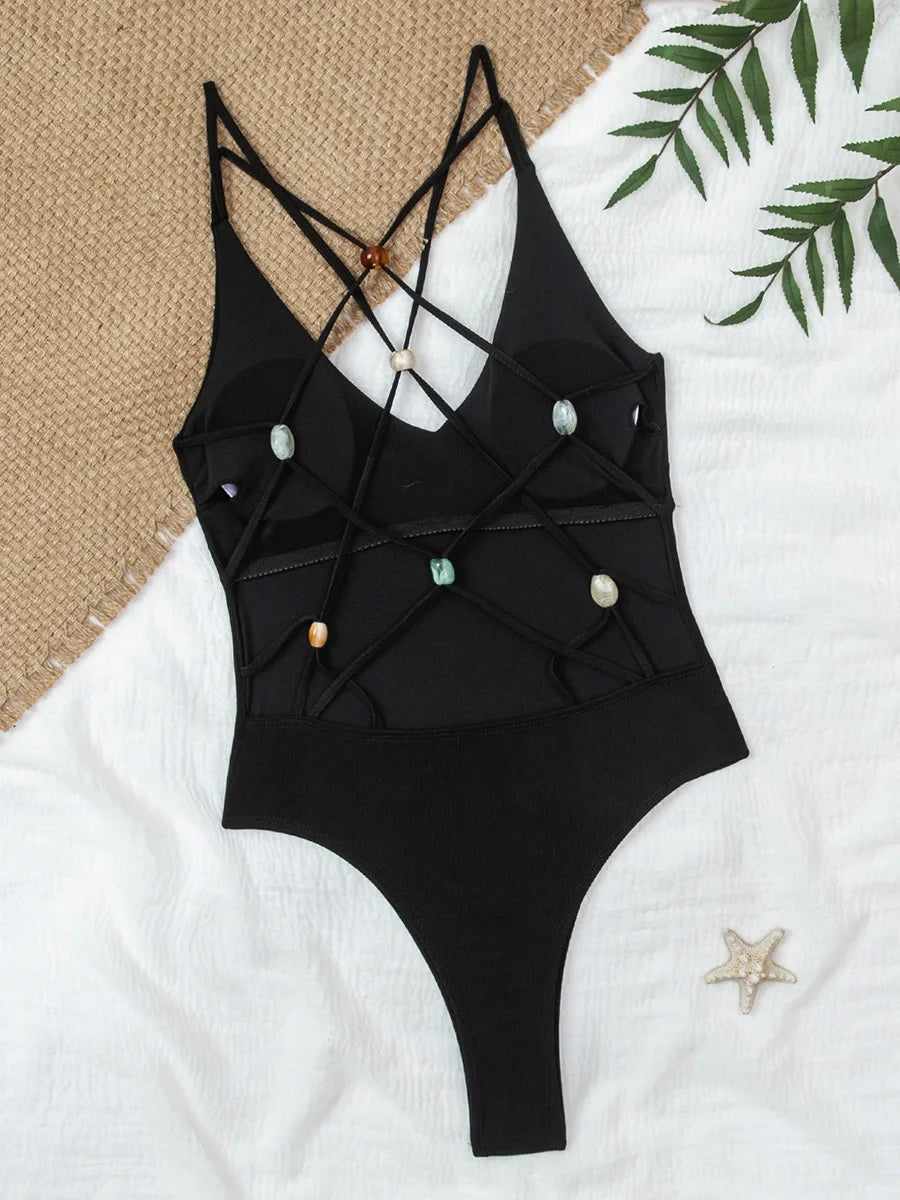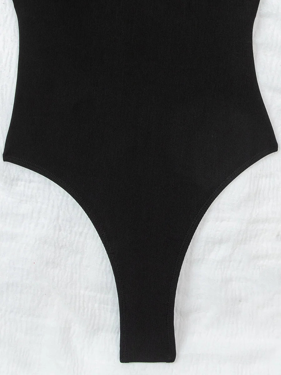 Sleek and sophisticated, this ribbed one-piece swimsuit features a daring backless design with a chic cross detail at the back. The textured ribbed fabric provides a flattering fit while the minimalist silhouette offers modern elegance. Perfect for beach days or poolside lounging, this versatile piece transitions effortlessly from water to casual wear. The backless cut creates a stunning visual statement while maintaining comfort and support.