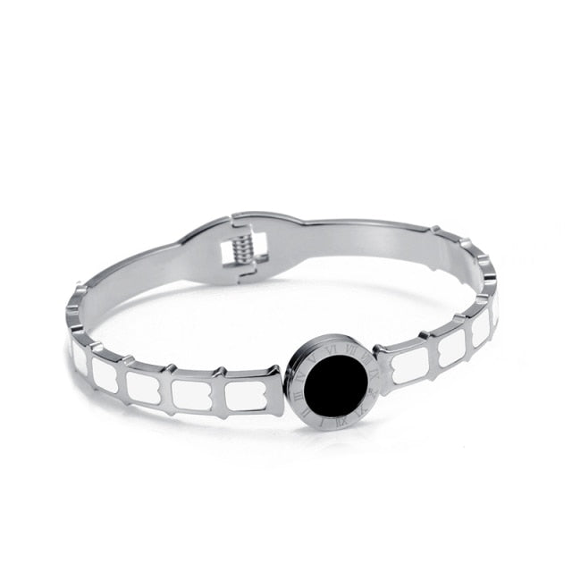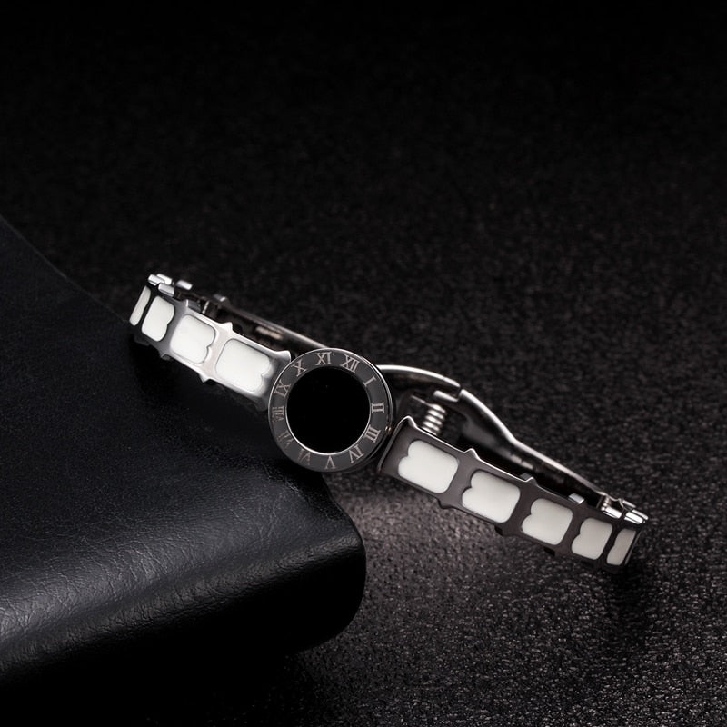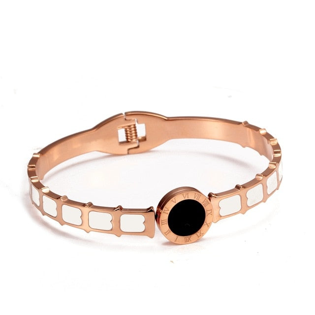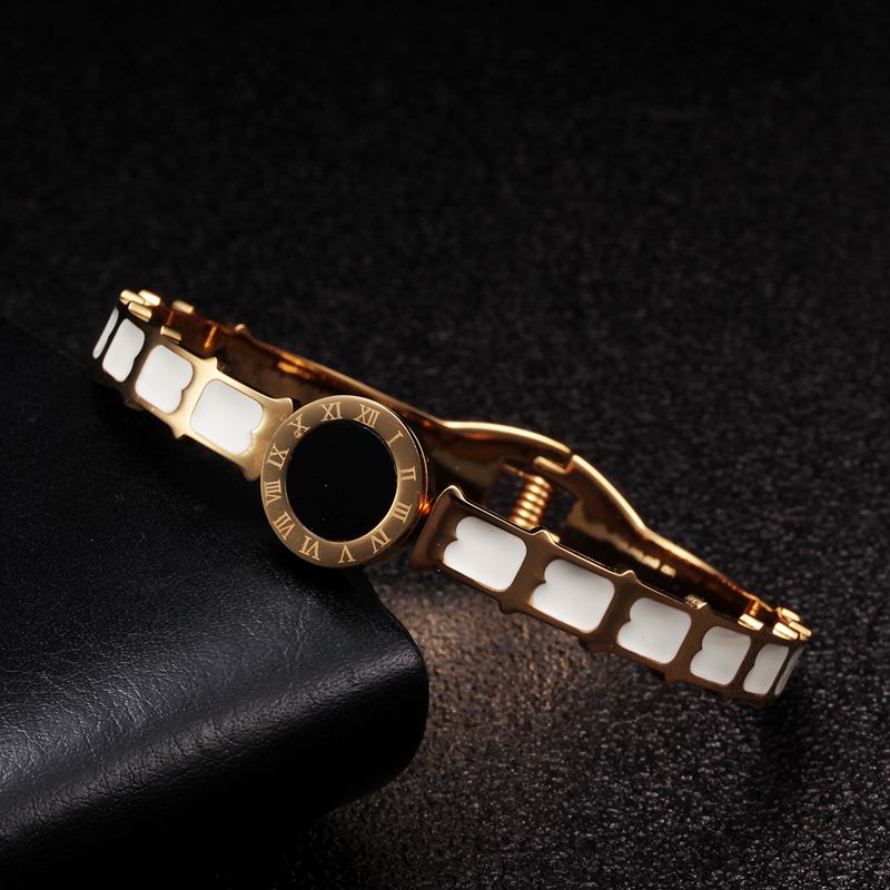 Metal Bangle Bracelet with Round Roman Number Clock Style