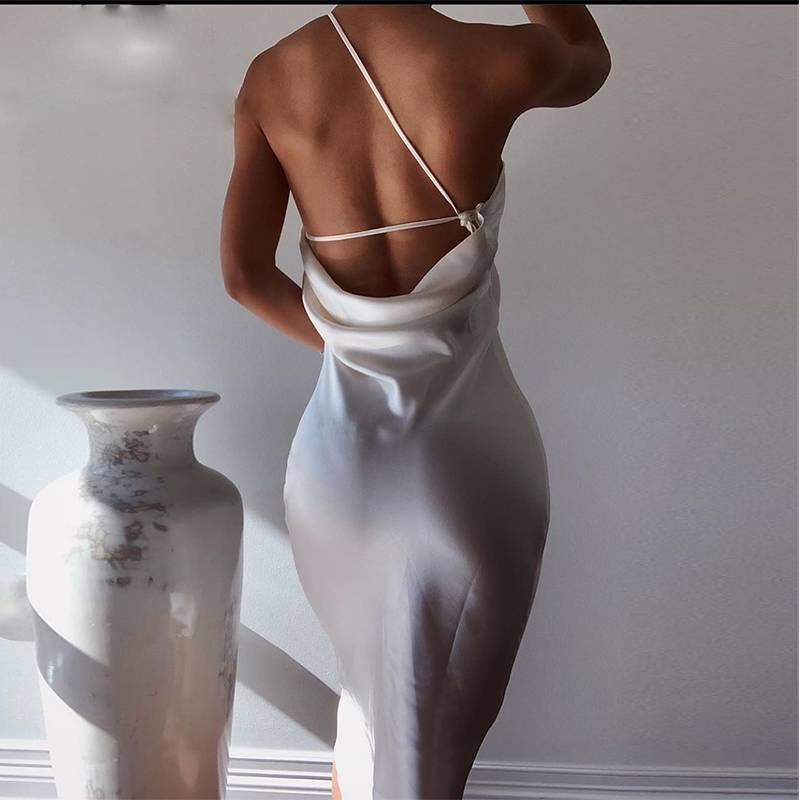Polyester Spandex Sleeveless One-Shoulder Dress