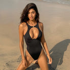 Make a bold statement with this striking black monokini featuring a daring hollow-out design. The sleek, solid black fabric creates a sophisticated silhouette while the strategic cutouts add modern edge and visual interest. Perfect for confident swimmers who want to stand out at the beach or pool. The one-piece construction offers reliable support and comfort, making it an ideal choice for both lounging and active water activities. Versatile enough to pair with cover-ups or wear solo for maximum impact.