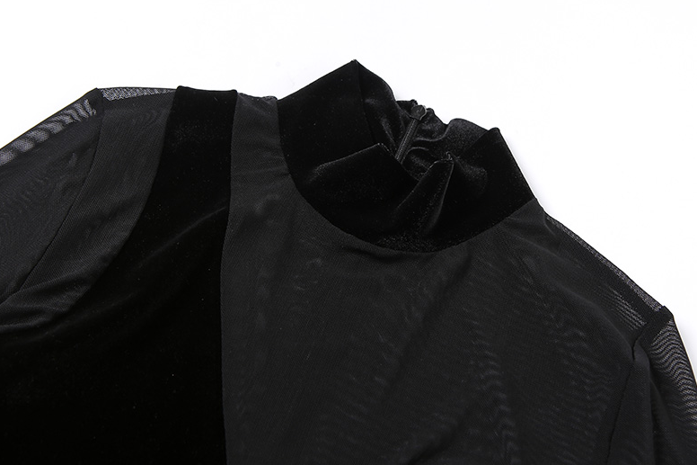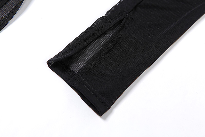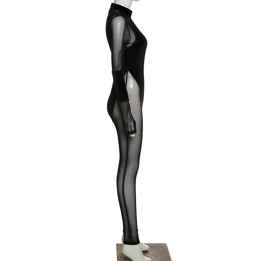 Long-Sleeved Mesh Polyester Spandex Jumpsuit with See-Through Combination Style