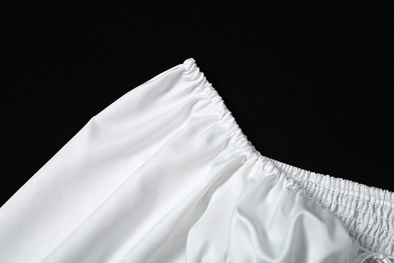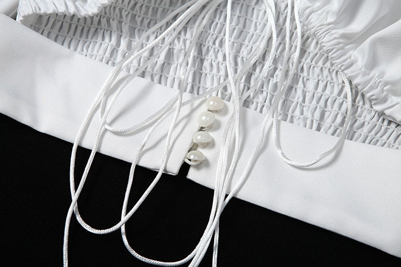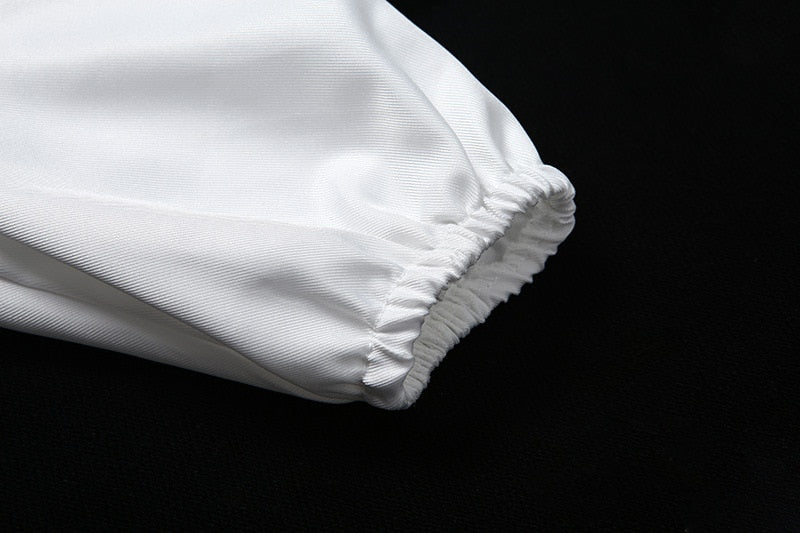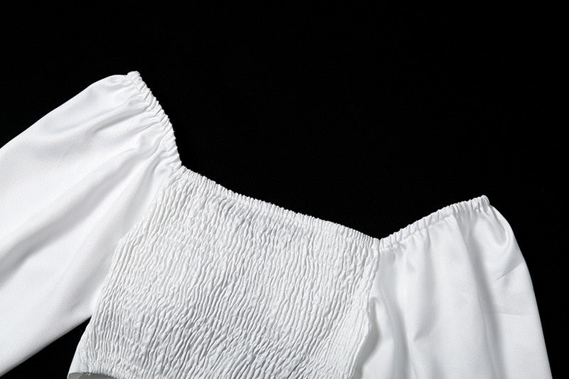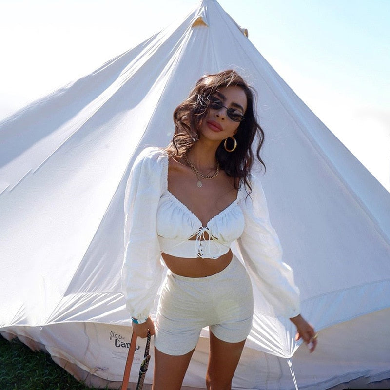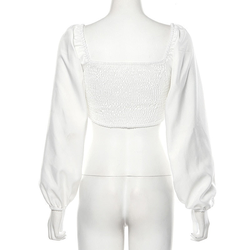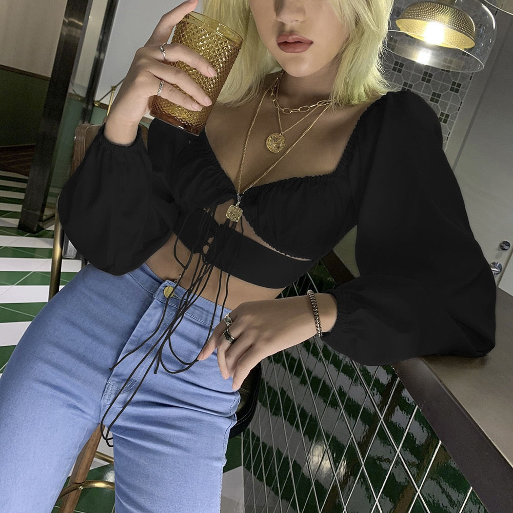 Streetwear Solid V Neck Hollow Out Puff Sleeve Women Crop Top