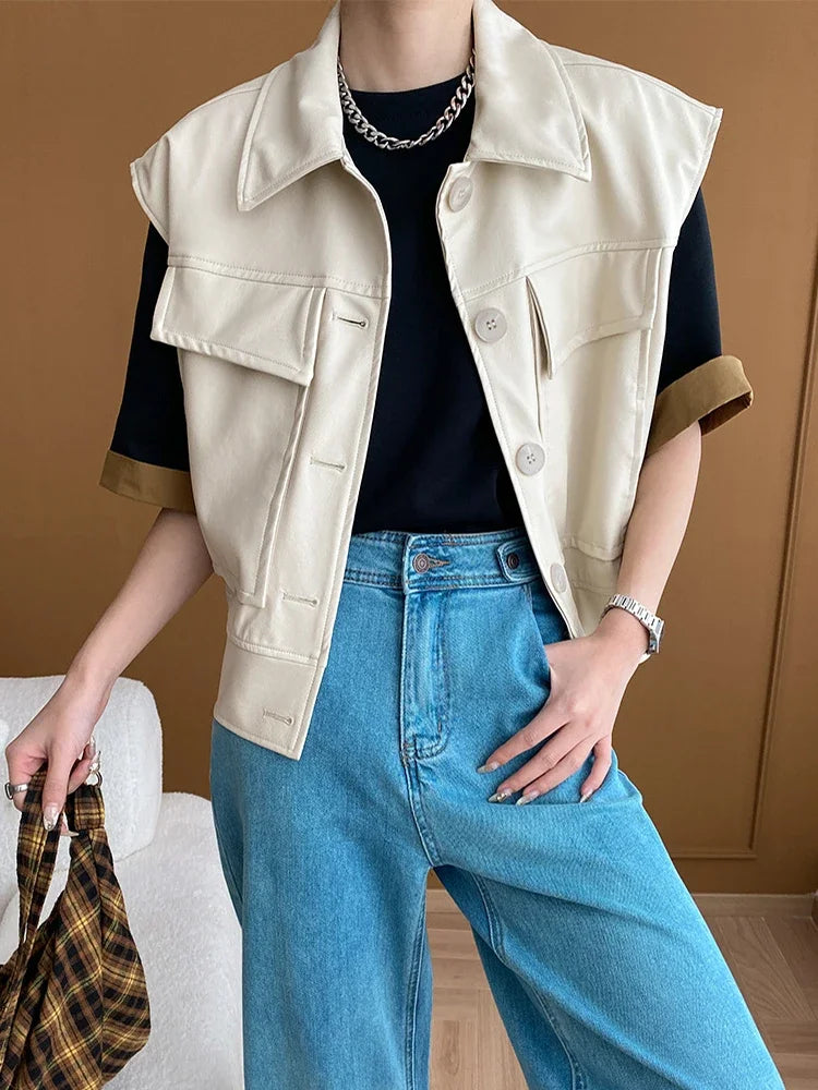 Embrace the urban chic style with our Thriller Night Jacket! Made from durable faux leather, this single-breasted jacket features multiple pockets and stylish button details, perfect for keeping your essentials secure. Elevate your streetwear game and make a statement with this must-have jacket!