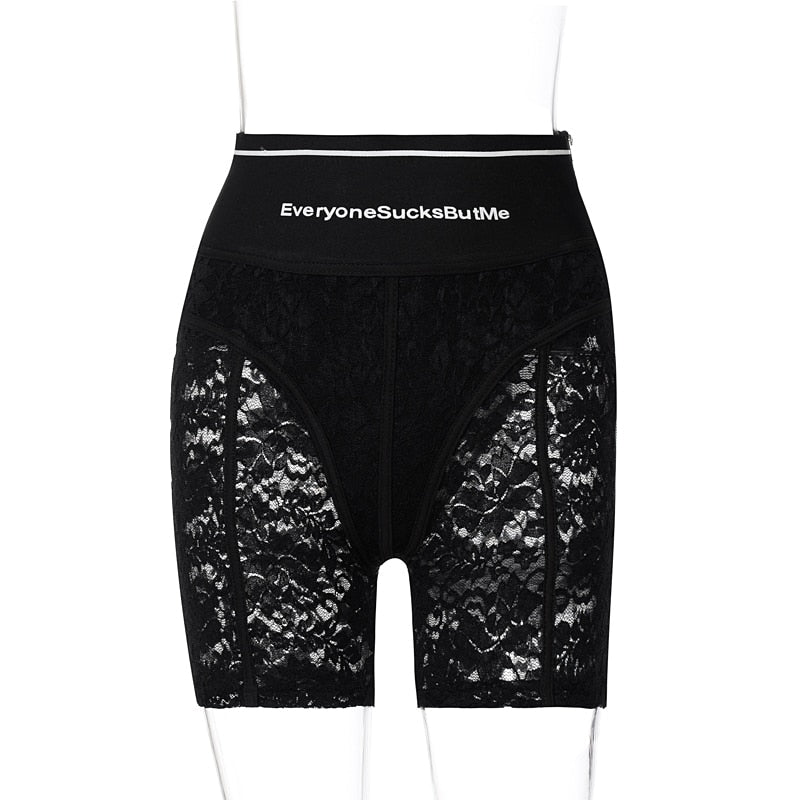 See-Through Floral Pattern Lace Short and Long Legging with Letter Printed