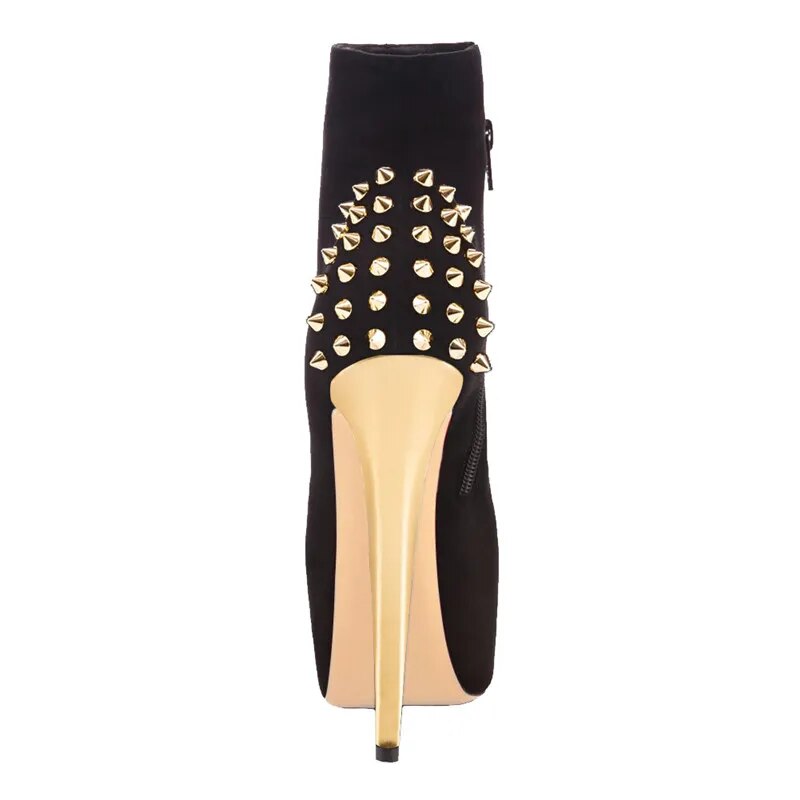 Meet Someone Else Ankle Boots offer stylish and comfortable protection for your feet with flock upper material, PU lining and insole material, and rubber outsole material. The boots feature thin heels for enhanced stability, plus rivets for added aesthetic. Enjoy a perfect fit with an ankle-high shaft.