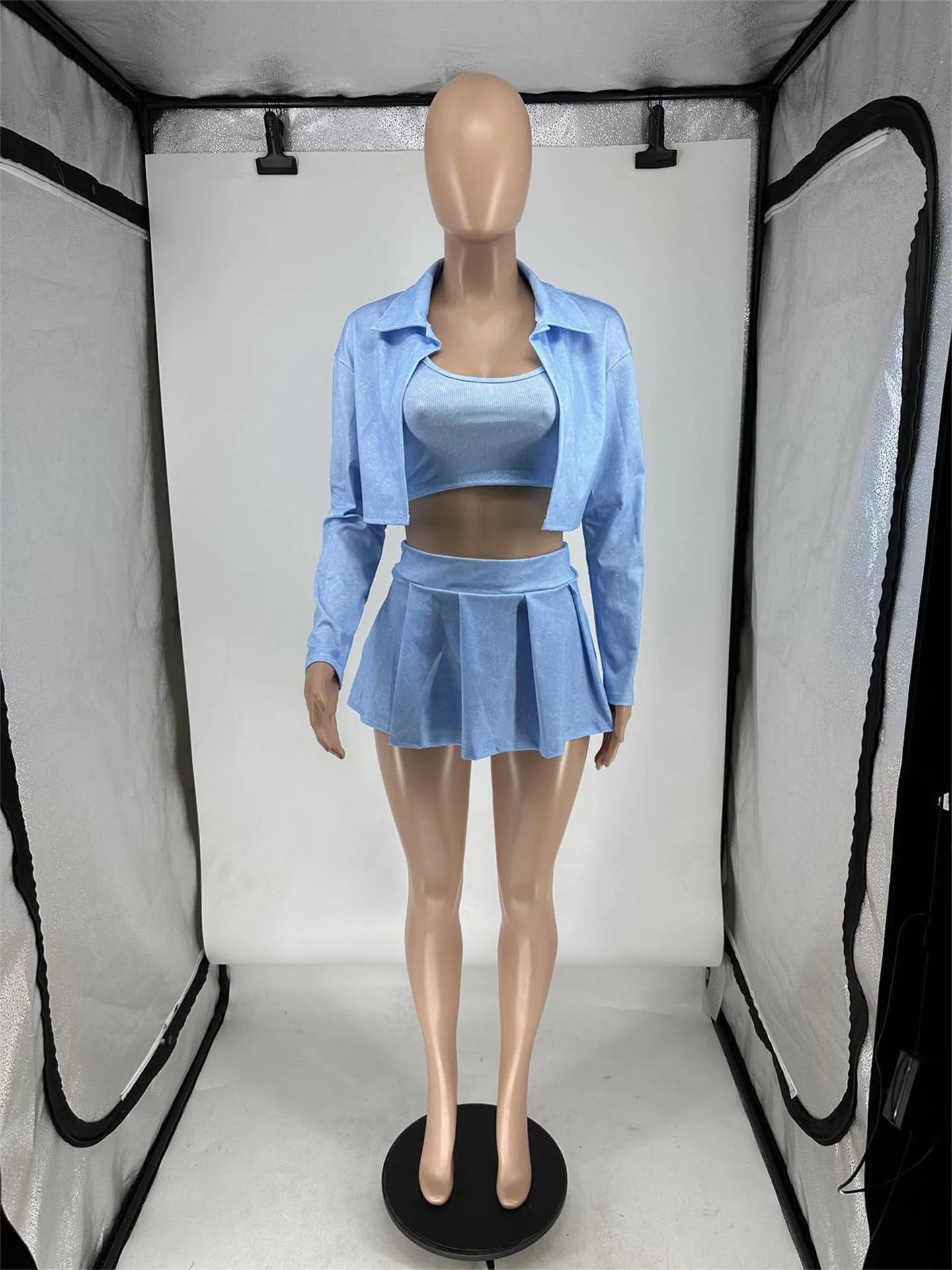 Indulge in your style with our skirt set! Made with smooth polyester and a convenient zipper, this solid set offers the perfect combination of comfort and style. Transform your dreams into reality with this must-have addition to your wardrobe.