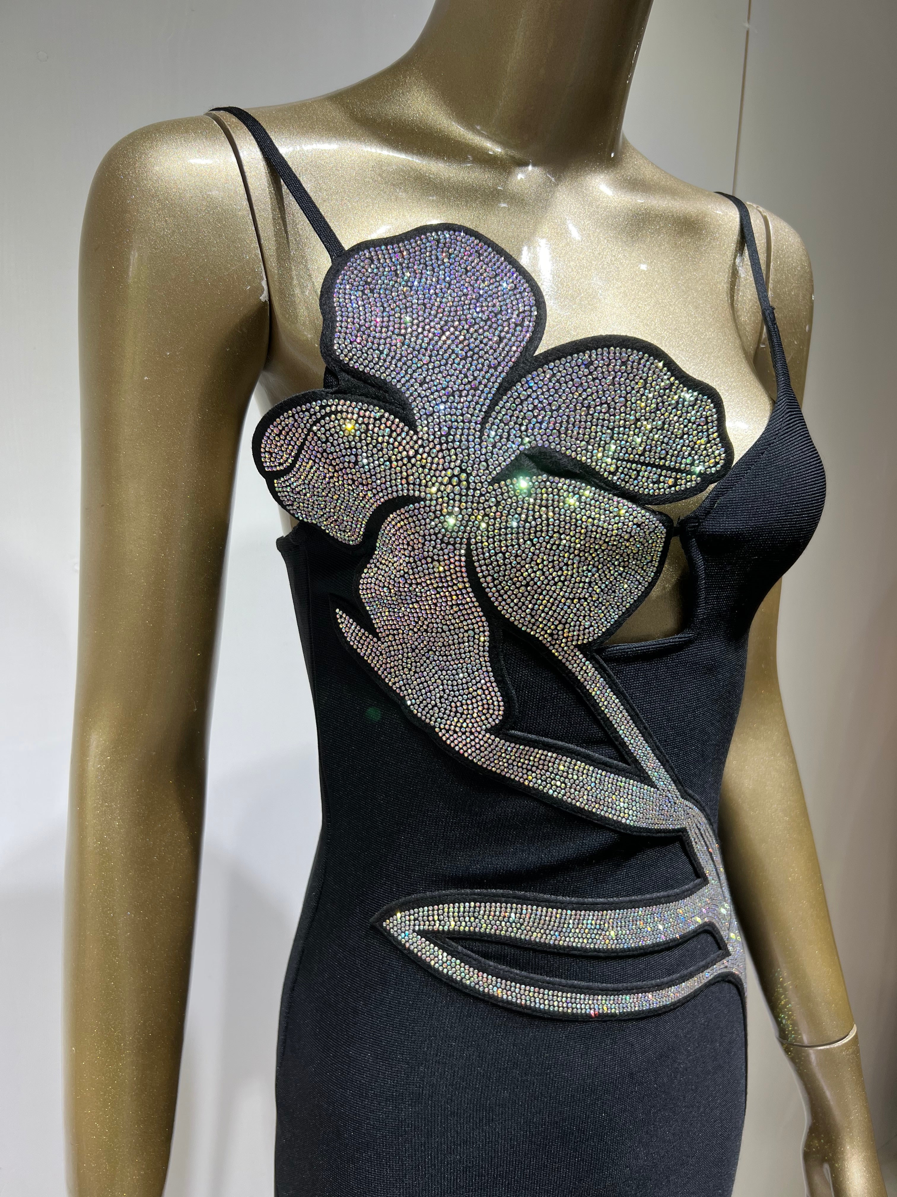 The Set Fires To My Heart Mini Dress features an eye-catching V-neckline and diamond decor. Made of stretchy and breathable nylon spandex, this dress provides a fitted slim silhouette with high elasticity. The solid pattern and zipper closure give it a classically elegant look perfect for any special event.