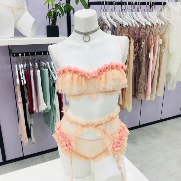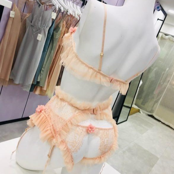 Floral Patterned Lingerie Sets with Ruffles and Applique Decoration