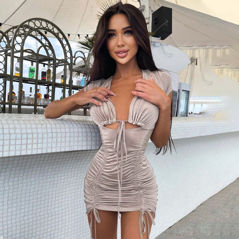 These stylish women's dresses are amazing. They have a modern ruching detail to create a figure-flattering silhouette. You will love the cut, the fit, and the feel. These dresses are great for any occasion. This nude color and style will fit in with anything she wears. This is a dress she will love for years to come.